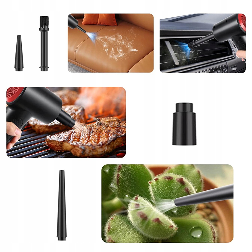 - ⚡ - Потужне, глибоке очищення: сила вітру розпилювача стисненого повітря може досягти 100 000 об/хв Для глибокого очищення дрібного пилу, наприклад, комп’ютерів, клавіатур, диванів, автомобілів. Порівняно з балончиками зі стисненим повітрям, бездротова повітродувка під час чищення не виробляє хімікатів, рідин або льоду. Захищає вашу електроніку від рідин. Зручно використовувати вдома, в офісі чи в автомобілі.