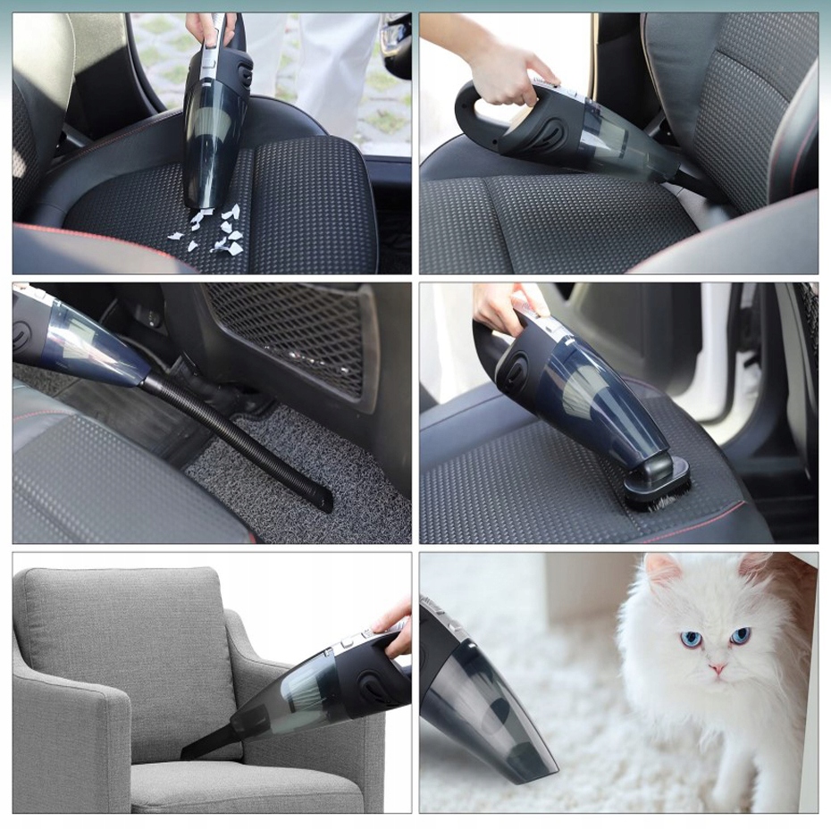 - Новий потужний двигун забезпечує силу всмоктування 6000 Па, а автомобільний пилосос на акумуляторі легко видаляє пил, крихти, котячу шерсть, шерсть тварин, а також розлите молоко та рідини.