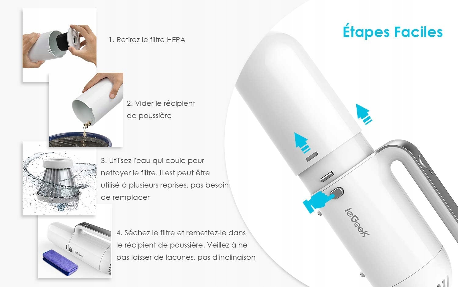Новий дизайн, максимальна потужність всмоктування - 130 Вт, потужність всмоктування 8000 Па, більше аналогічних продуктів. Порівняно з бездротовими пилососами, немає перерв через короткий термін служби батареї. Фільтр високої щільності з нержавіючої сталі, двошаровий фільтр, знімний, можна очистити безпосередньо водою, тривале використання та потребує заміни. Корпус важить лише 0,7 кг і не надто важкий для чищення під час чищення.