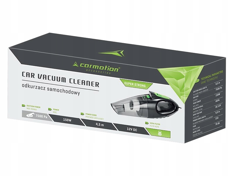 Тримайте свою машину в бездоганній чистоті за допомогою автомобільного пилососа 12 В, 150 Вт / 7500 Па. Замовляйте зараз і насолоджуйтеся мобільною чистотою в дорозі!