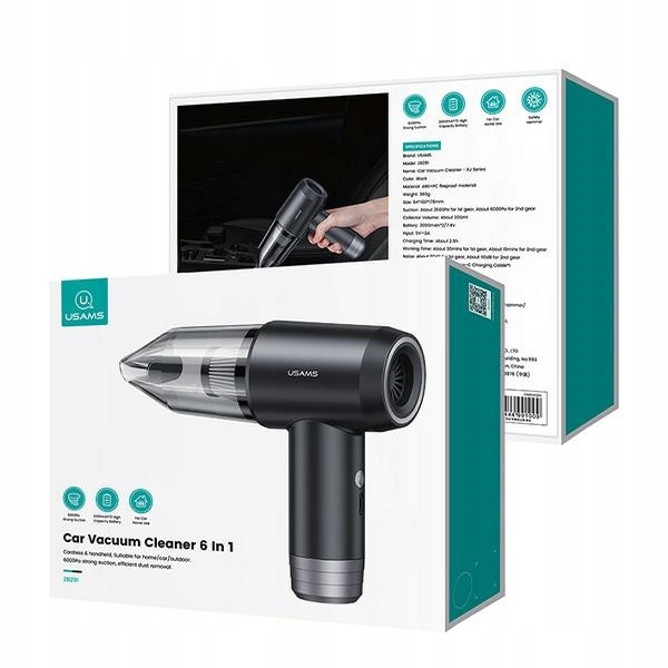 USAMS XJ 6in1 автомобільний пилосос чорний Штрих-код: 6958444991009