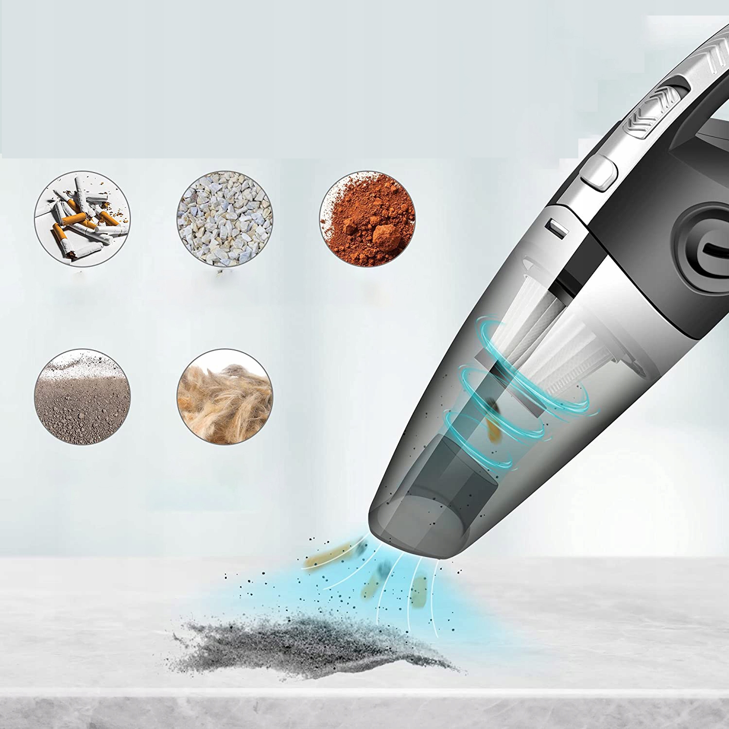 АВТОМОБІЛЬНИЙ ПИЛОСОС З СУПЕР ВСИСАННЯМ – це вдосконалення попереднього бездротового ручного пилососа. Новий потужний двигун забезпечує потужність всмоктування 6000 Па, завдяки чому він легко видалить пил, крихти, котячу шерсть, шерсть тварин, пролите молоко та рідини.