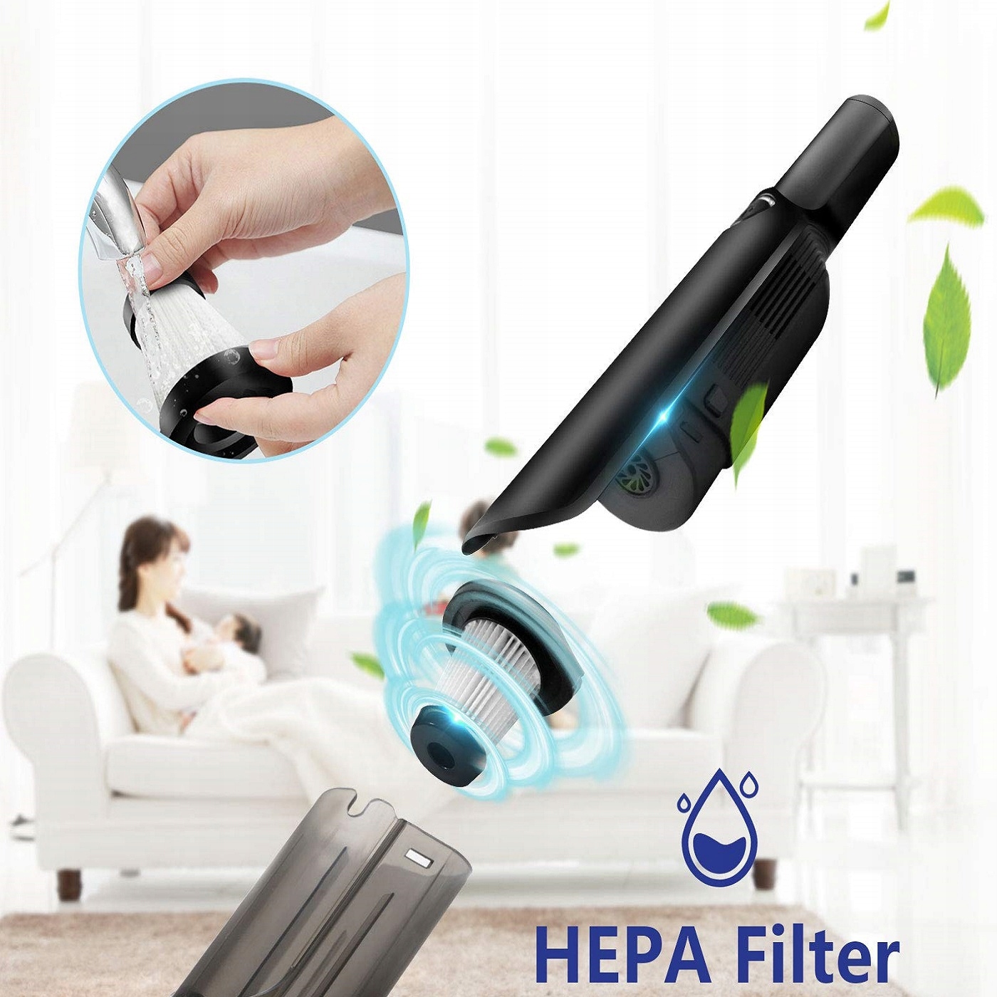 Цей ручний пилосос має дві потужні функції всмоктування. Його можна використовувати не тільки для автомобілів, а й для миття підлоги, дивана, ліжка, стільниці тощо в домогосподарстві, де важко прибирати. Без набридливих кабелів ви можете вільно переходити з однієї кімнати в іншу. Цей пилосос легкий і ергономічний. Ви можете очистити легко й ефективно в будь-який час і в будь-якому місці.
