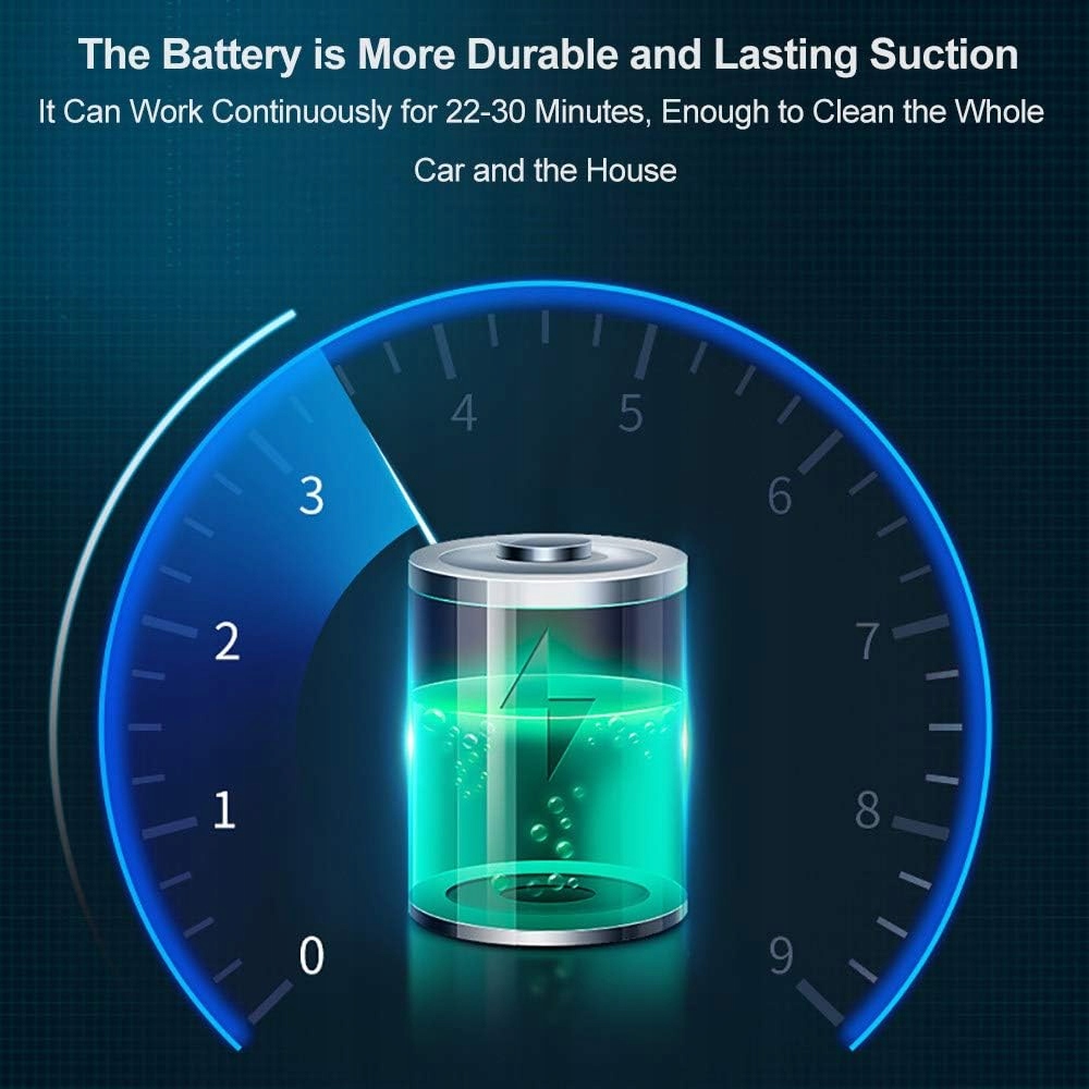 Надзвичайно ефективний фільтр Цей автомобільний пилосос має дуже ефективний фільтр HEPA, який фільтрує 999 частинок із повітря, і його можна мити. Він фільтрує, серед іншого, кліщів та їхні яйця, бактерії та пилок. Висока потужність всмоктування та висока ефективність Бездротовий автомобільний пилосос із багатоступеневим циклонічним потоком повітря та спіральною конструкцією циферблата. Він досягає до 5000 Па і обертається зі швидкістю до 3000 об / хв. Легко збирайте папір, пил, волосся та монети. Універсальний у вологих і сухих умовах. Довговічний у вологих і сухих умовах. Легко очищає пил, бруд, шерсть тварин, розлите молоко та рідини. Оснащений багатьма різними аксесуарами, його можна легко очистити вдома або в будь-якій частині автомобіля. Вам більше не доведеться турбуватися про рідини та проїзд без мішка. Цей автомобільний пилосос включає різноманітні аксесуари, багатофункціональні насадки та подовжувальні шланги, які дуже підходять для легкого прибирання різних відходів. Вологе та сухе використання Цей ручний пилосос можна використовувати як для вологого, так і для сухого використання. Легко очищає пил, шерсть тварин, пролите молоко і будь-яку рідину. Крім того, цей ручний пилосос легкий і його легко носити з собою. Ви можете покласти його у валізу, і він не займе багато місця.