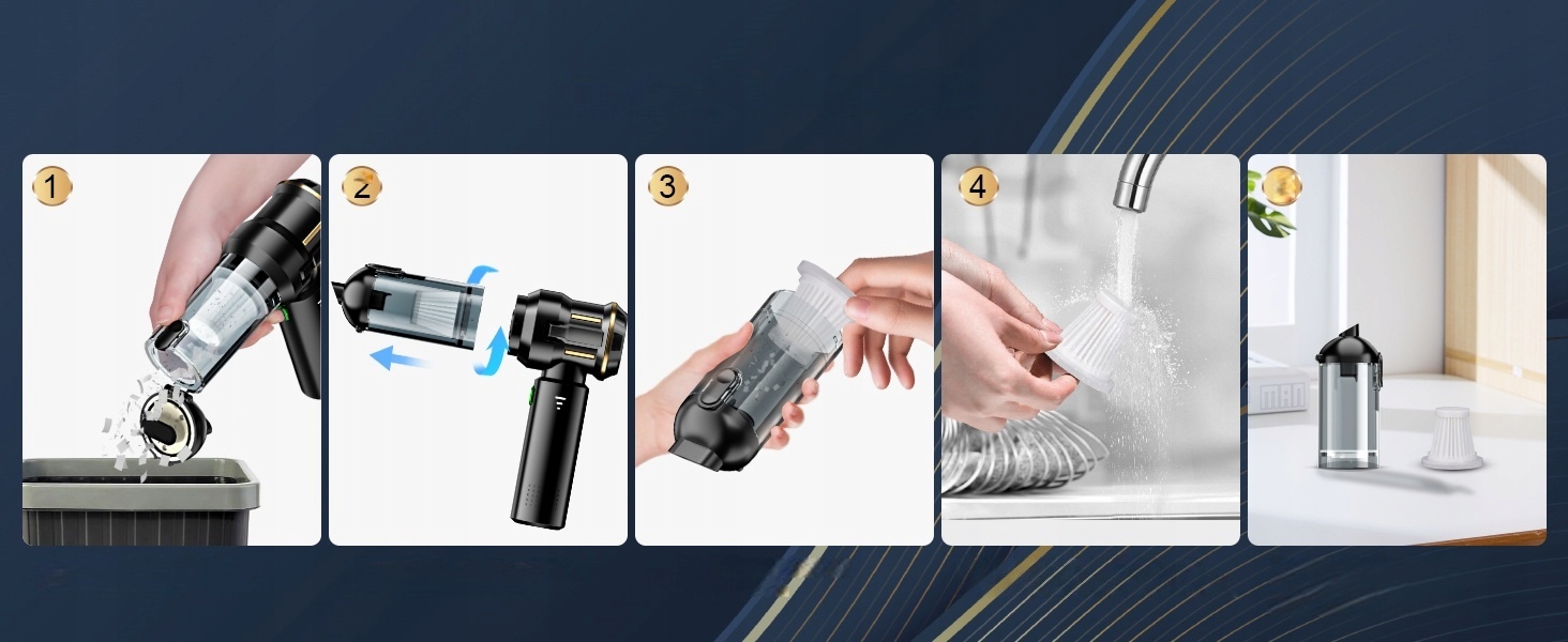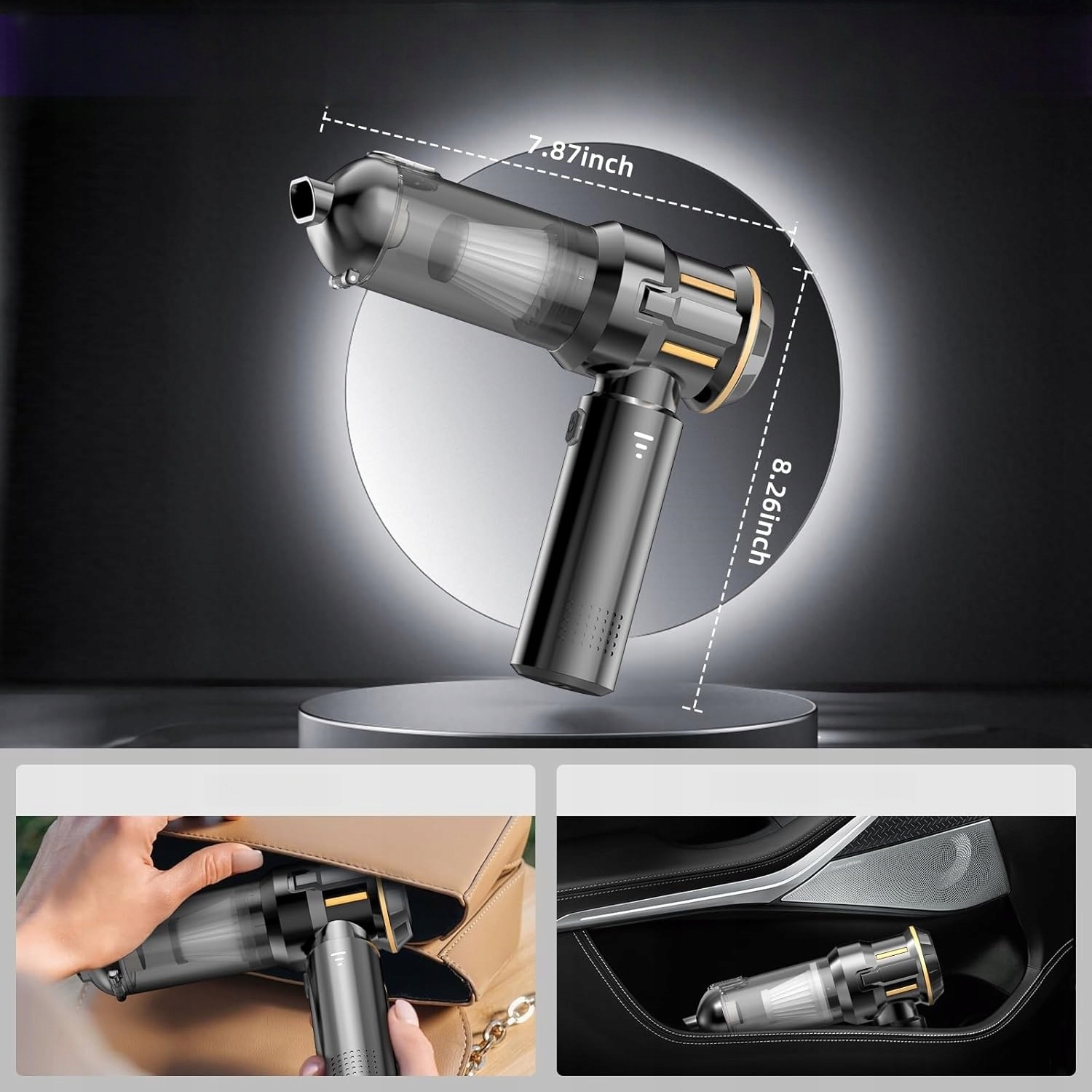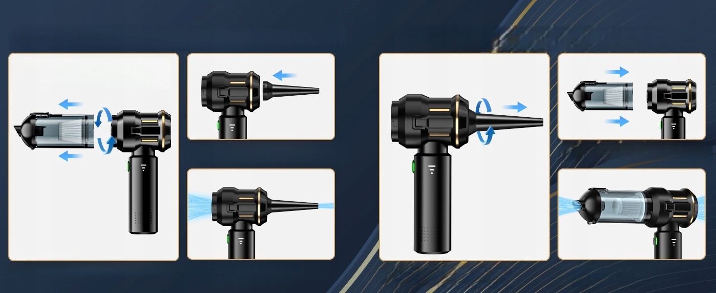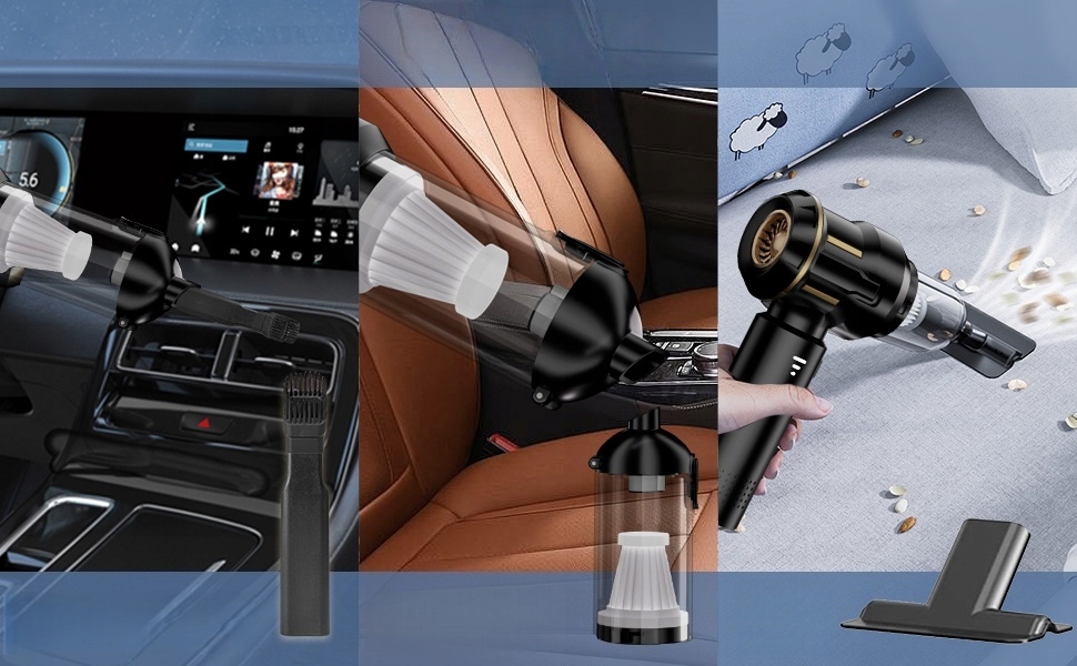 Багатофункціональна повітродувка та пилосос 4 в 1: цей бездротовий ручний пилосос має функції видування, пилососа та видування. Його можна використовувати не лише як пилосос для прибирання всередині будинків і автомобілів, а й як розпилювач стисненого повітря для видалення пилу з фільтрів кондиціонера чи комп’ютерів. Його можна використовувати як вакуумний компресор для швидкого здуття речей під час зберігання одягу чи запечатування їжі. Його також можна використовувати для накачування кемпінгових матраців або як повітродувки для роздмухування вогню під час активного відпочинку.