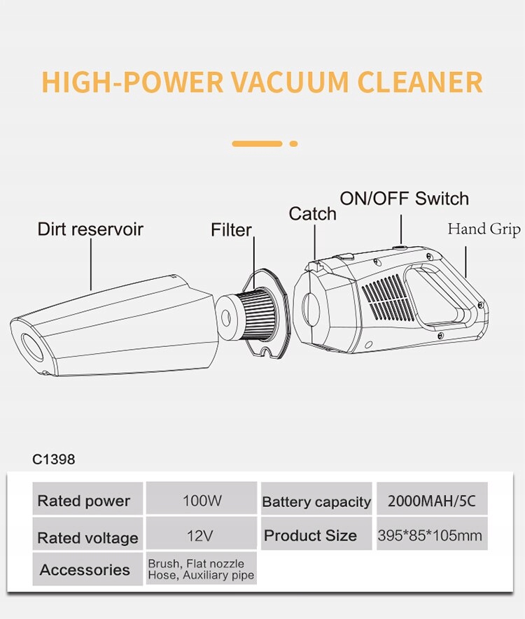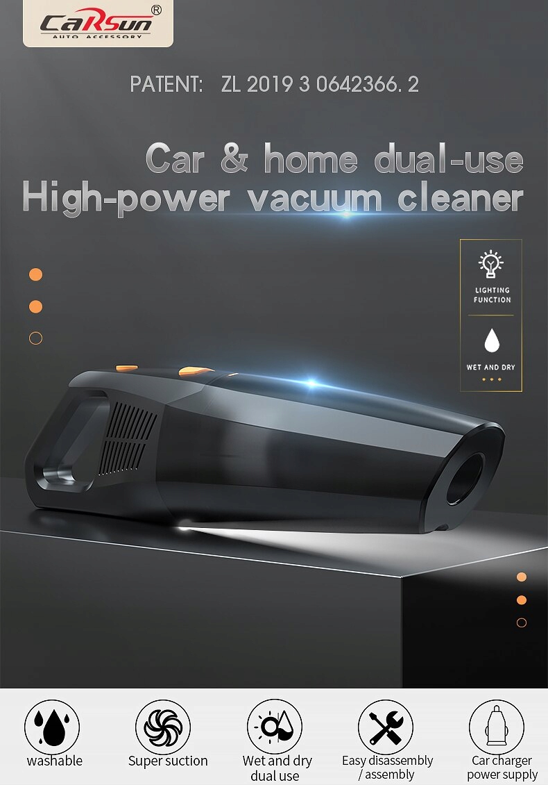 АВТОМОБІЛЬНИЙ ПИЛОСОС З АКУМУЛЯТОРОМ CARSUN 2000mAh LED