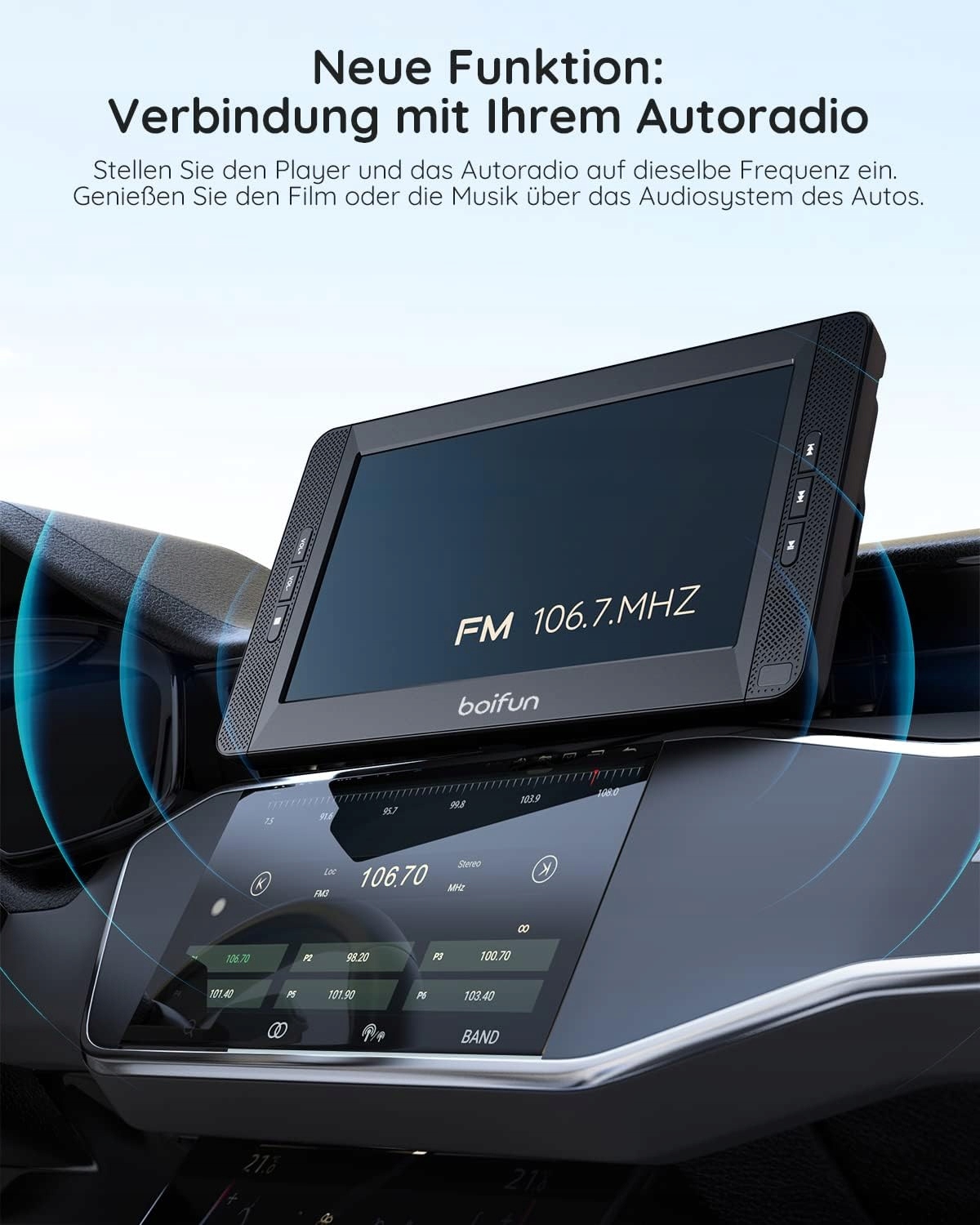10,1-дюймовий портативний DVD-програвач від BOIFUN. Це ідеальний розмір - не надто великий і не надто малий - для автомобільного підголівника. Крім того, ви можете живити та підключати плеєр монітора лише за допомогою одного кабелю AV/DC, тож ви можете дивитися той самий фільм на обох плеєрах одночасно.