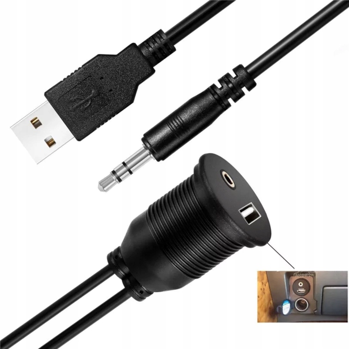 У разі встановлення радіоприймача в автомобіль адаптер дозволяє підключити Роз’єми USB і AUX поза радіо/аудіоплеєром. Це дуже корисно, якщо роз’єми знаходяться лише на задній панелі радіо або заводський кабель занадто короткий.