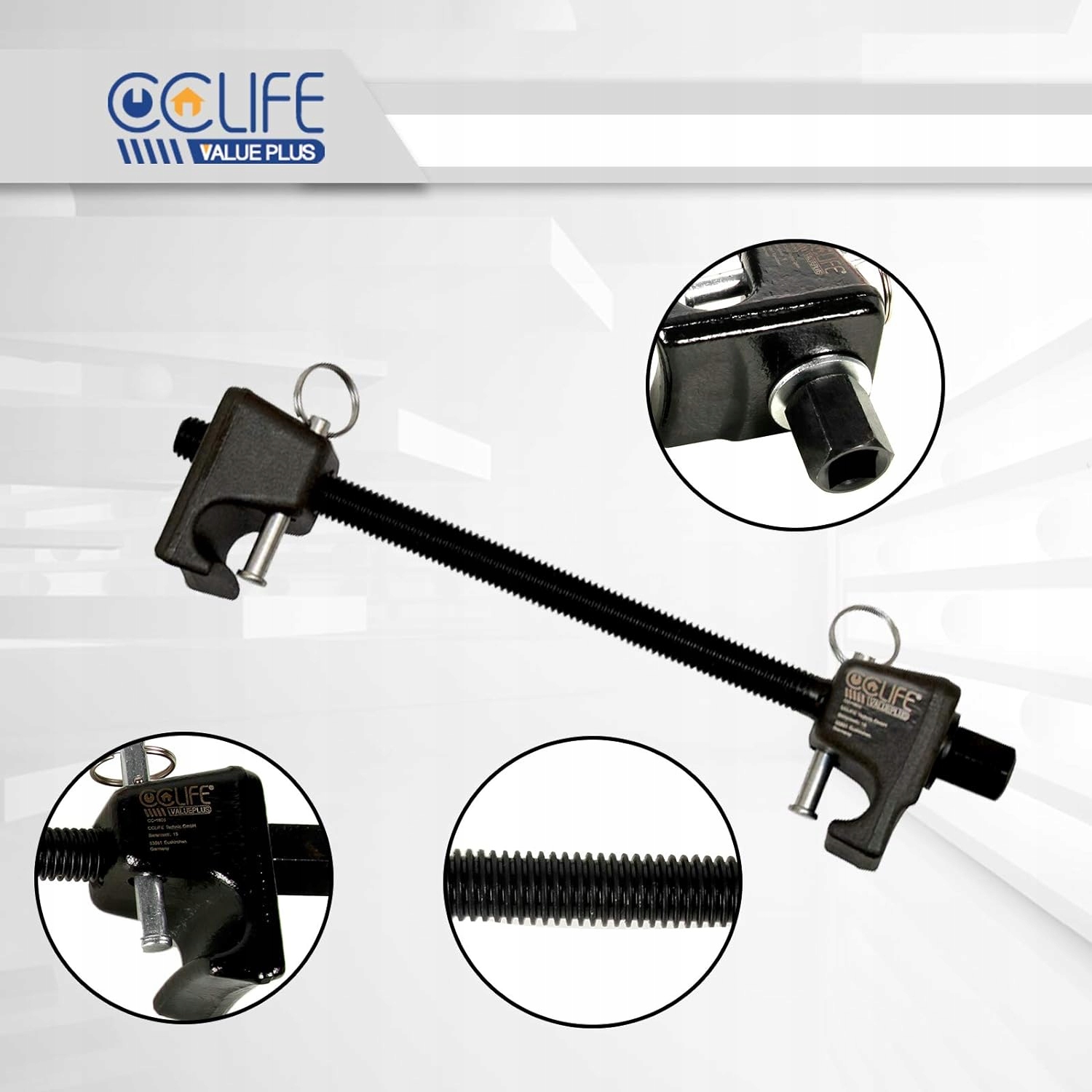 - Дозволяє швидко стиснути гвинтову пружину, щоб замінити амортизатор або пружину.