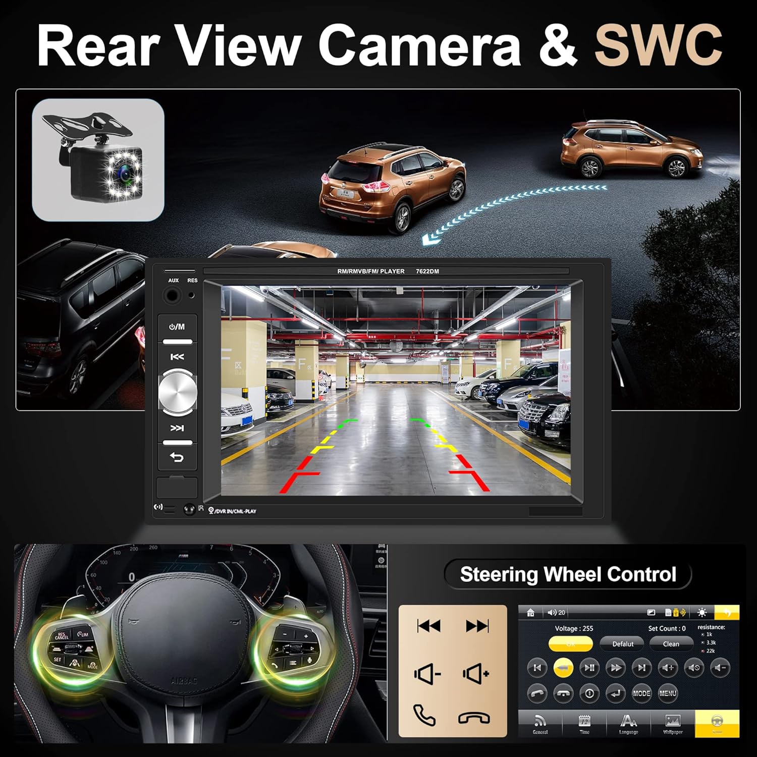 ✅ Radio Car 2 DIN з Bluetooth Hands -бездоганний набір, IOS/Android Mirror Link 6.2 дюйм, сенсорний екран, автомобільне радіо, подвійний DIN з Bluetooth FM/USB/AUX/EQ/EQ/TF керування кермом
