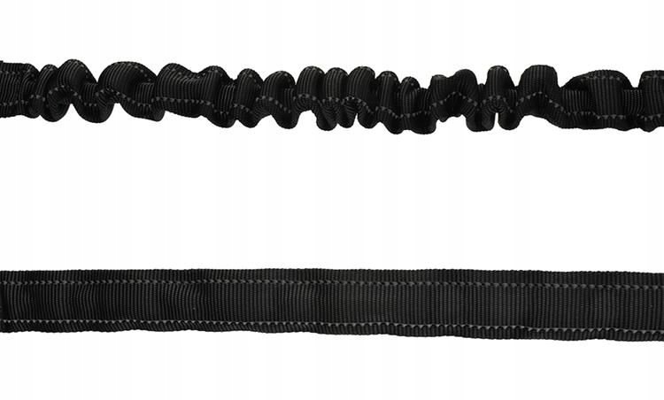 - ЕЛАСТИЧНИЙ - розтягнута частина повідця поглинає раптові потягування, що підвищує комфорт тварини та зменшує травми при раптовому гальмуванні або участь у ДТП.