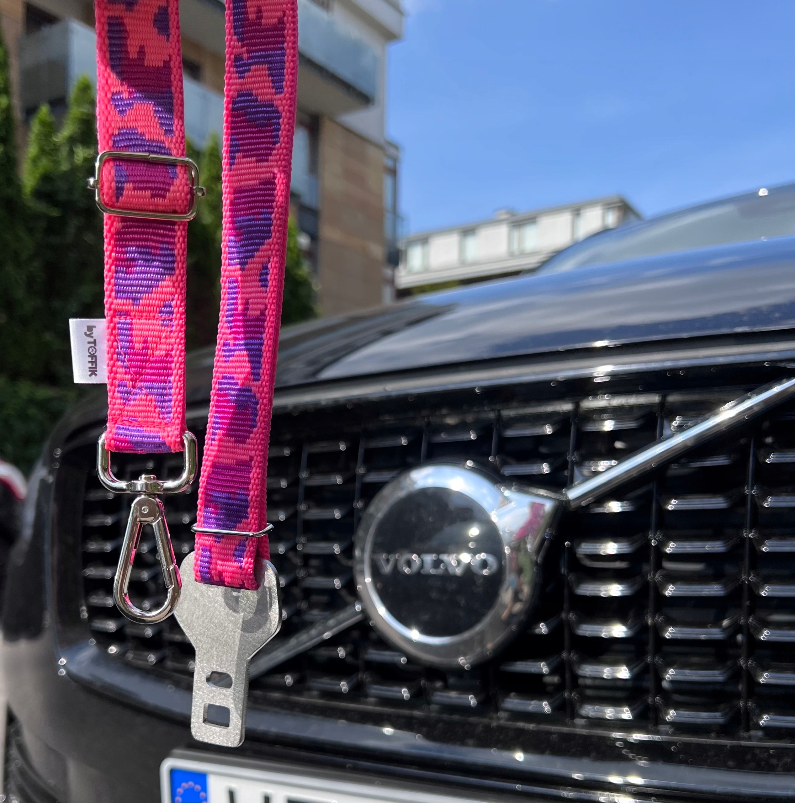 Застібка ременя безпеки підходить до більшості моделей VOLVO. Перед покупкою перевірте, який ремінь безпеки має ваш автомобіль. Довжина ременя byToffik регулюється приблизно від 45 до 85 см. Ширина стрічки: 2,5 см. Завершується естетичним карабіном, до якого можна прикріпити шлейку вашого вихованця.
