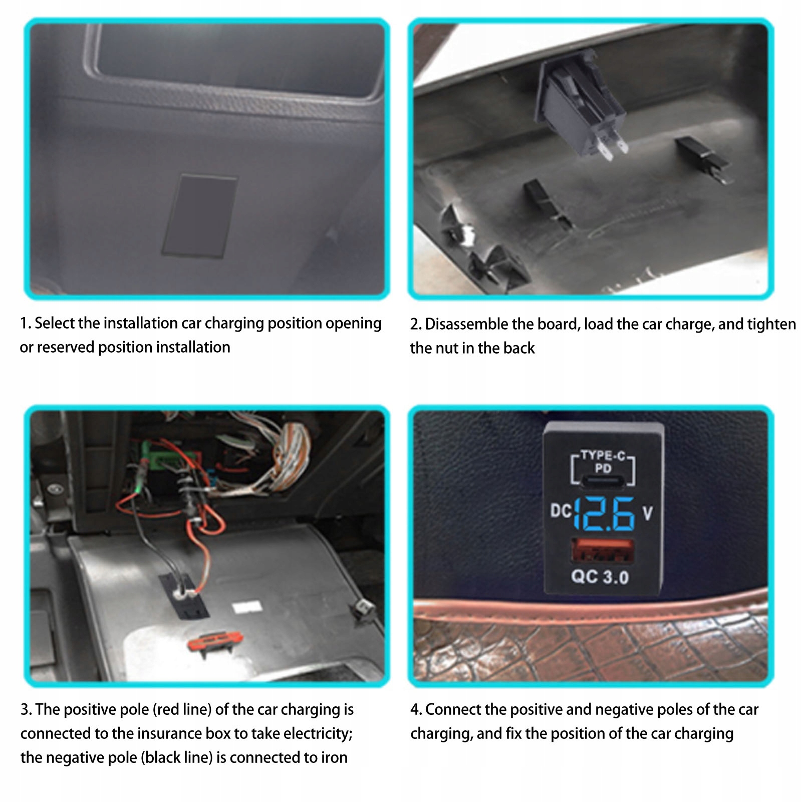 2. Видаліть плитку, завантажте навантаження на автомобіль і затьмарюйте на спину P> P> 3. Лінія) зарядки автомобілів підключена до страхової коробки для збору електроенергії; Негативний полюс (чорна лінія) підключений до заліза