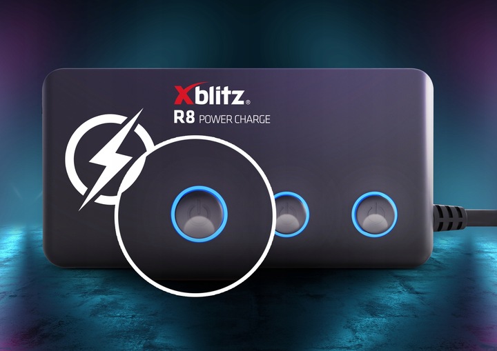Насолоджуйтесь зручними рішеннями, які використовуються в Xblitz R8 POWER CHARGE, використовуючи кілька пристроїв одночасно. Замість кабелів для вмикання та вимикання живлення будуть використовуватися прості кнопки з підсвічуванням. Ця опція забезпечить вам легкий контроль і повну концентрацію на напрямку руху.