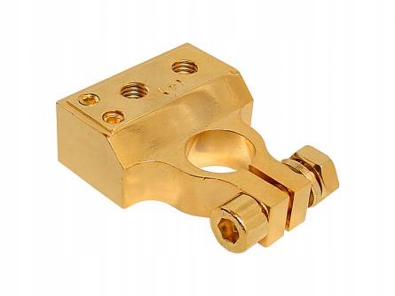 Якісний автомобільний термінал, що забезпечує відмінну електропровідність. Затискач виготовлено з металу, який не тьмяніє та не піддається корозії, що гарантує тривалий термін служби без збоїв, а також безпеку та задоволення користувача. Затискач оснащений двома крученими виходами діаметром 10 мм і отвором діаметром 5,6 мм, що дозволяє підключати кілька силових кабелів.