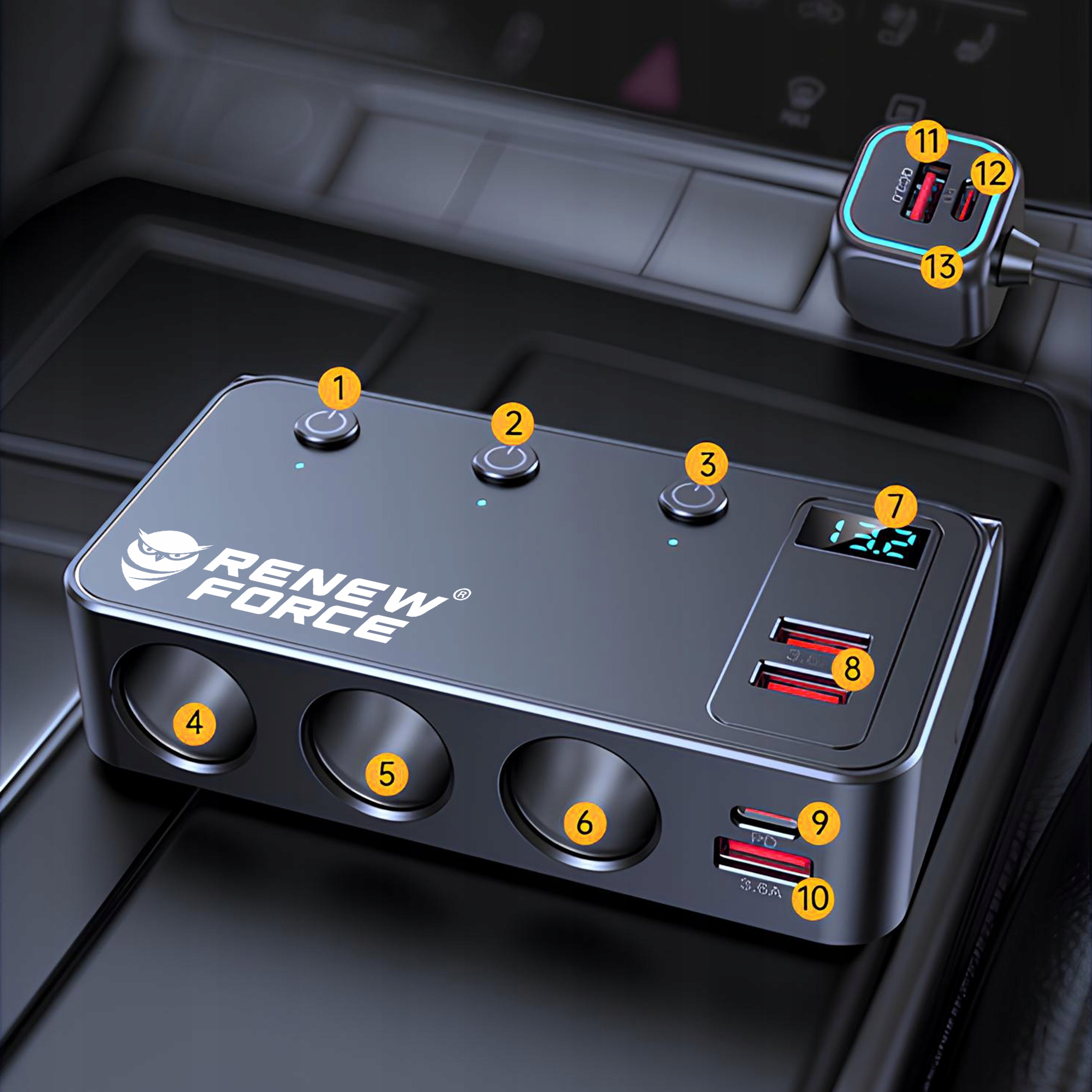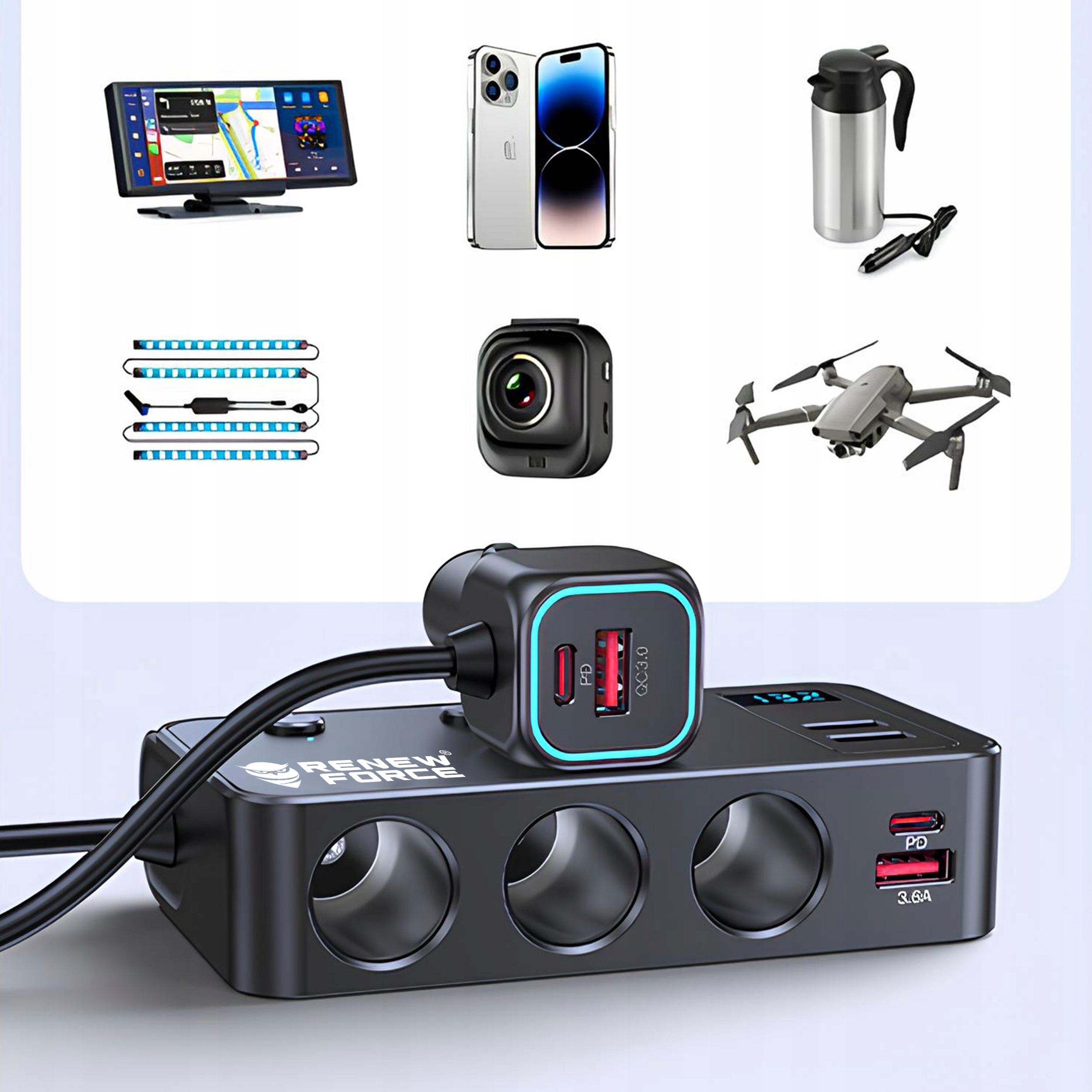Цей вдосконалений автомобільний розгалужувач прикурювача є ідеальним рішенням для водіїв, які використовують багато пристроїв одночасно. Це дозволяє живити кілька аксесуарів одночасно, а завдяки швидкій зарядці USB QC і PD ви економите час і дбаєте про свою електроніку. Це практичне доповнення, яке дійсно підвищує комфорт щоденної їзди.
