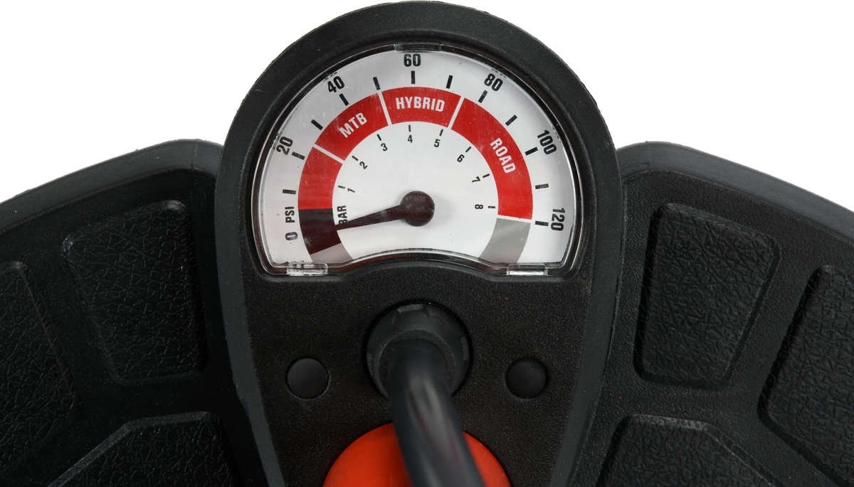 Ручний насосз максимальним тиском 8 бар. Він має універсальну головку для накачування автомобільних та велосипедних клапанів.