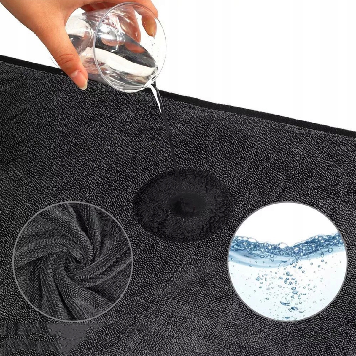 🔹 МІКРОФІБРА НАЙВИЩОЇ ЯКОСТІ. Цей рушник для сушіння автомобіля виготовлено з надм’якої мікрофібри, яка добре вбирає воду, яка ефективно видаляє краплі води без ризику подряпин. Делікатні невидимі краї забезпечують безпечне й точне очищення.
