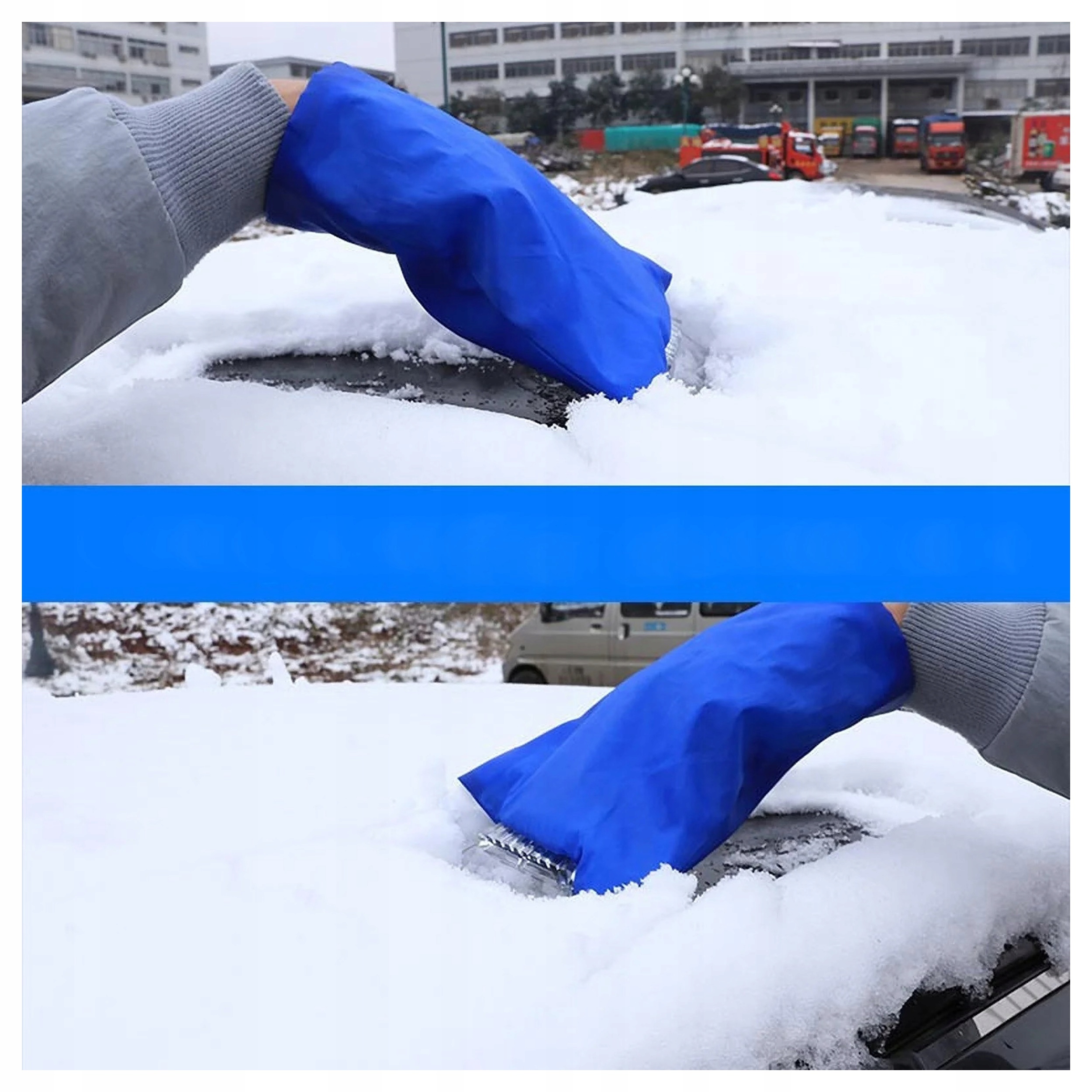 Автомобільний скребок для льоду та морозу, утеплена рукавичка, синій