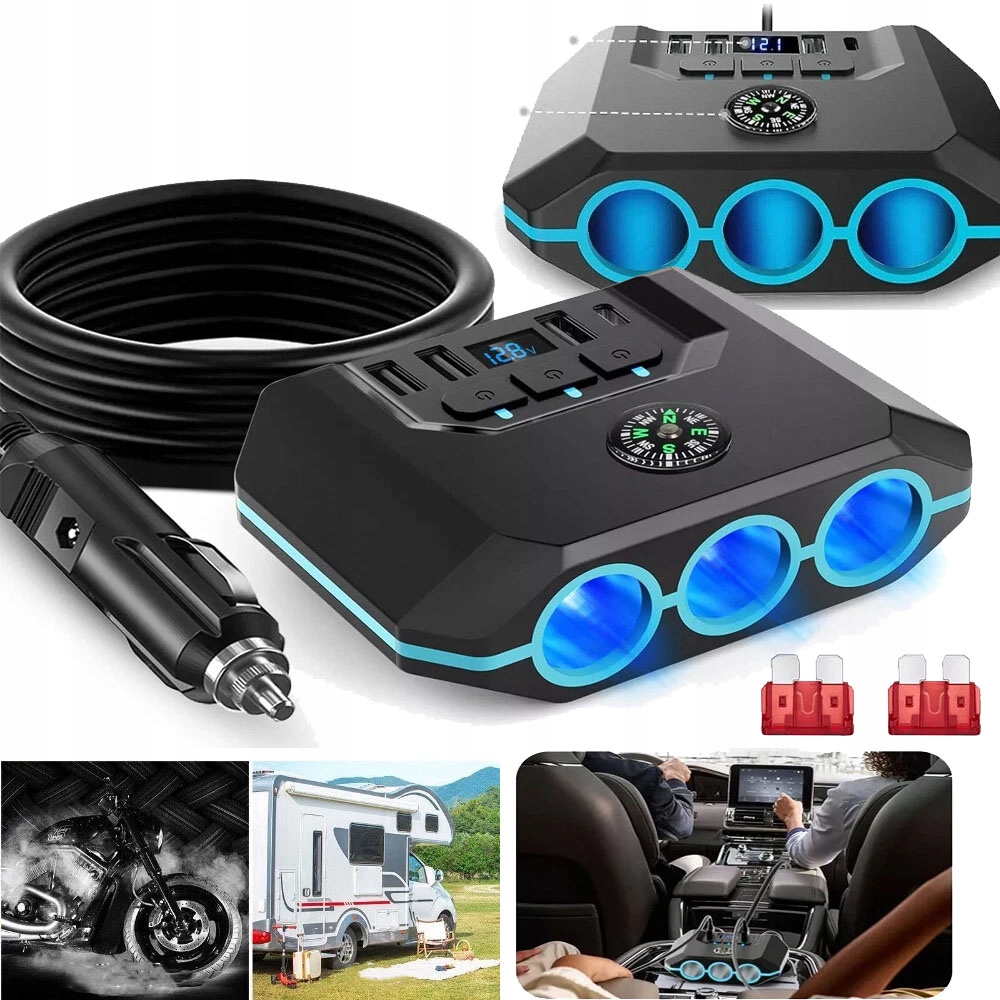 ✅ Універсальне використання 7 в 1 – 4 порти USB (включаючи Type-C) + 3 гнізда для автомобільного прикурювача! Одночасно заряджайте смартфони, планшети, навігацію та підключайте пристрої на 12/24 В.