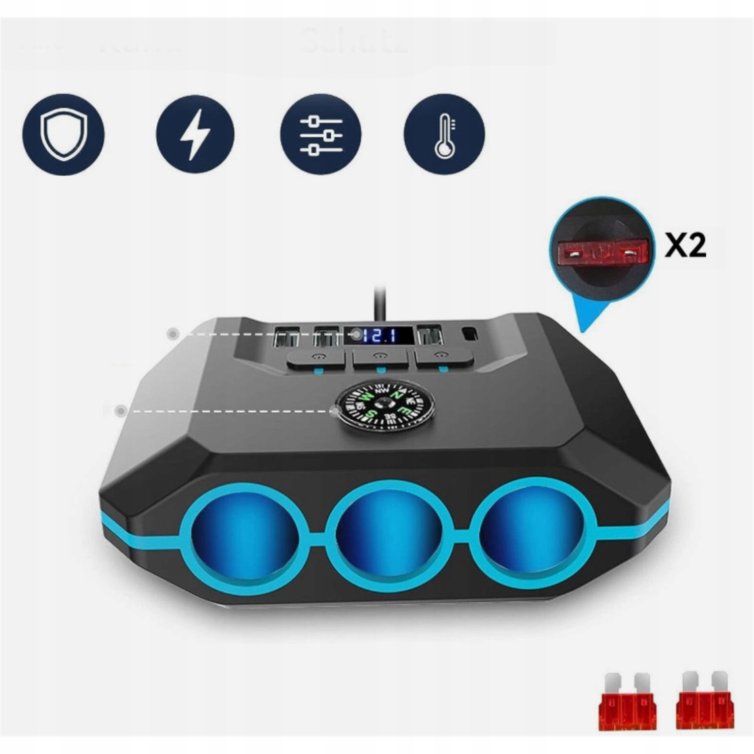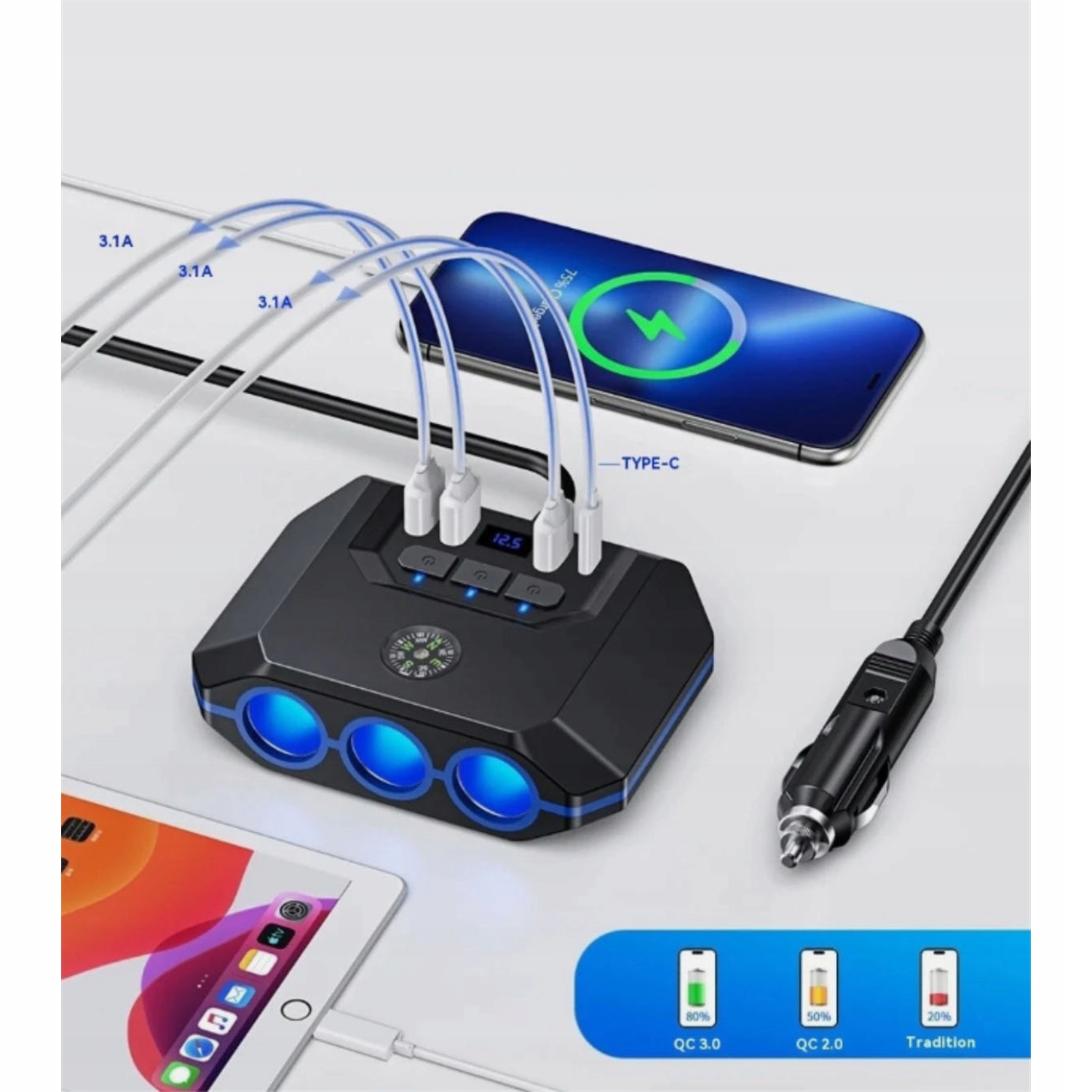 Автомобільний спліттер Гніздо прикурювача 12-24 В 3x USB 3.1QC USB-C 120 Вт