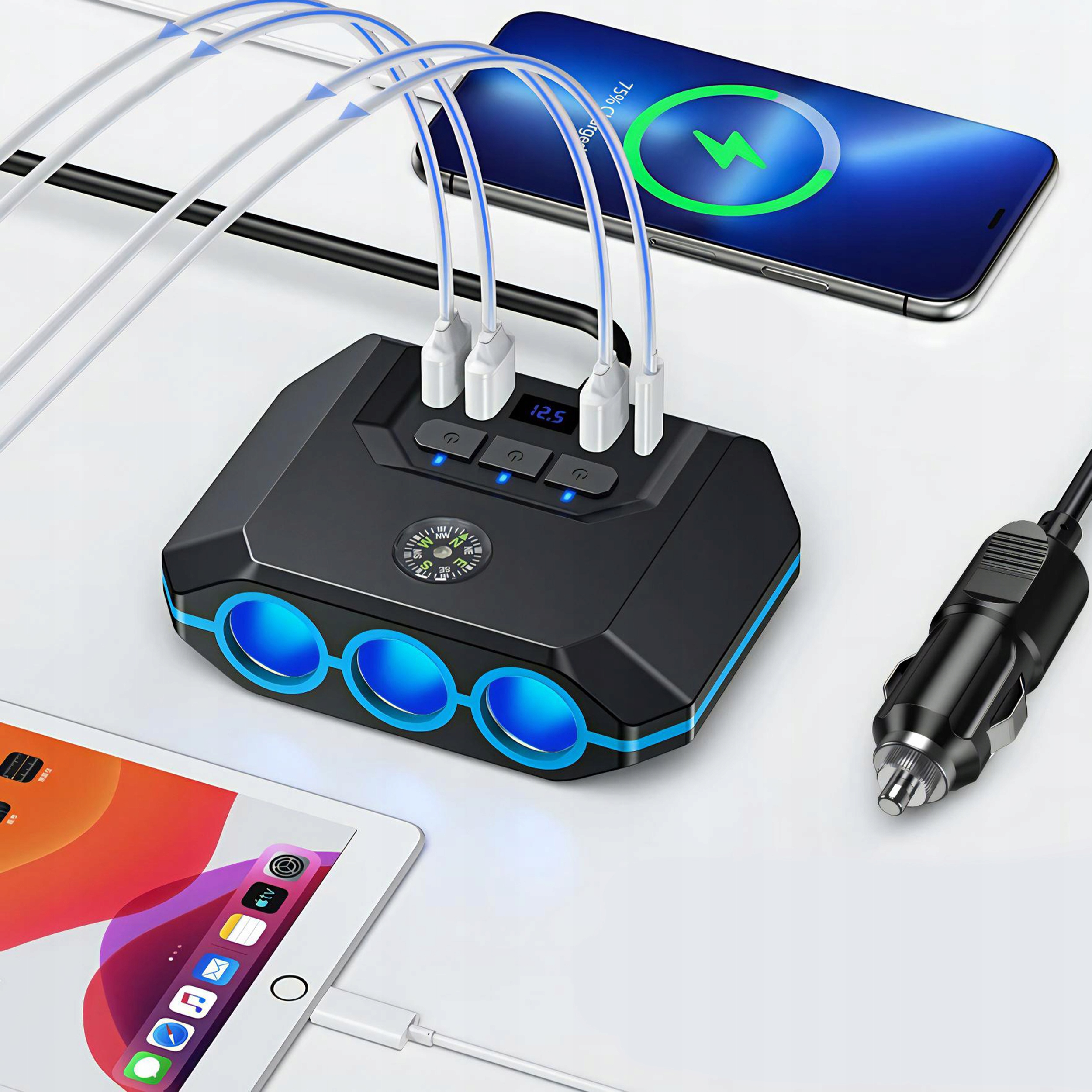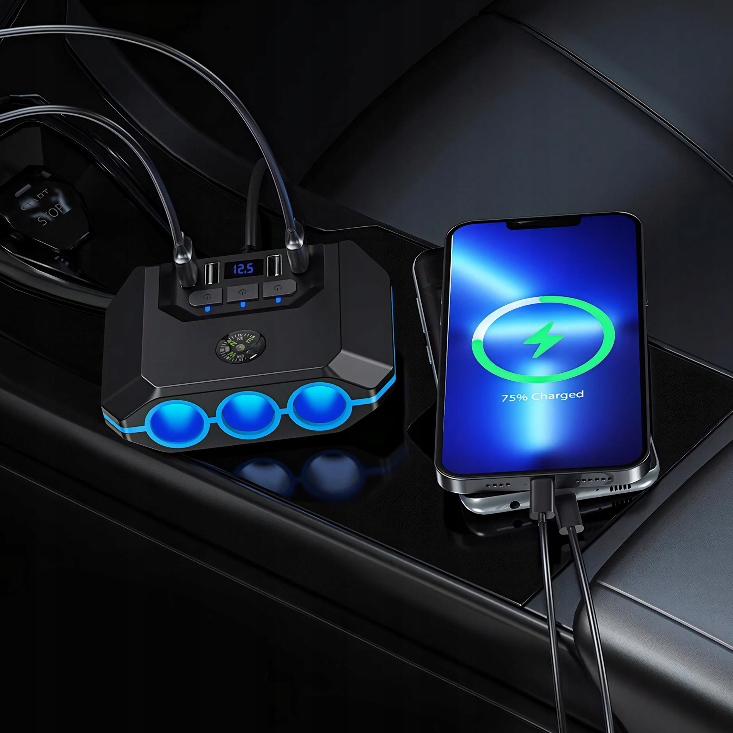 Досягніть вищого рівня зручності та ефективності заряджання у вашому автомобілі завдяки нашому пристрою -інноваційному розгалужувачу гнізда прикурювача. Цей незамінний гаджет пропонує ДО 3 ПОРТІВ USB + 1 ПОРТ USB-C і вбудований вольтметр, щоб ви могли заряджати кілька пристроїв одночасно та контролювати напругу в автомобілі. Насолоджуйтеся швидкою зарядкою та безпекою під час кожної поїздки!