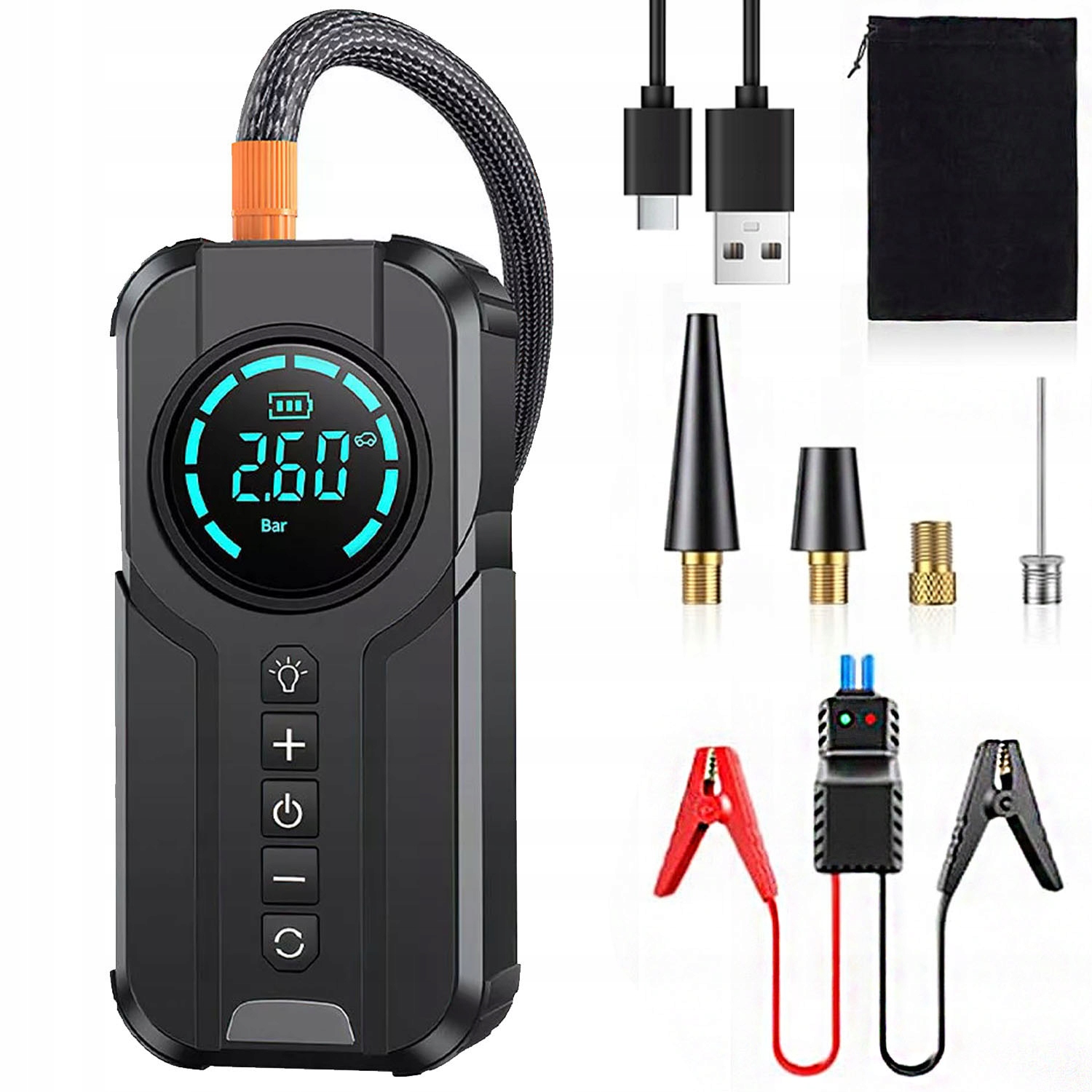 Цей багатофункціональний набір повинен бути у кожного водія! Завдяки поєднанню автомобільного стартера з вражаючою піковою силою струму 1000 А, точного повітряного насоса з РК-дисплеєм і блоку живлення ви забезпечуєте собі повну підтримку в будь-якій ситуації на дорозі. Ідеально підходить для легкових автомобілів, мотоциклів та інших транспортних засобів на 12 В.🚗💨