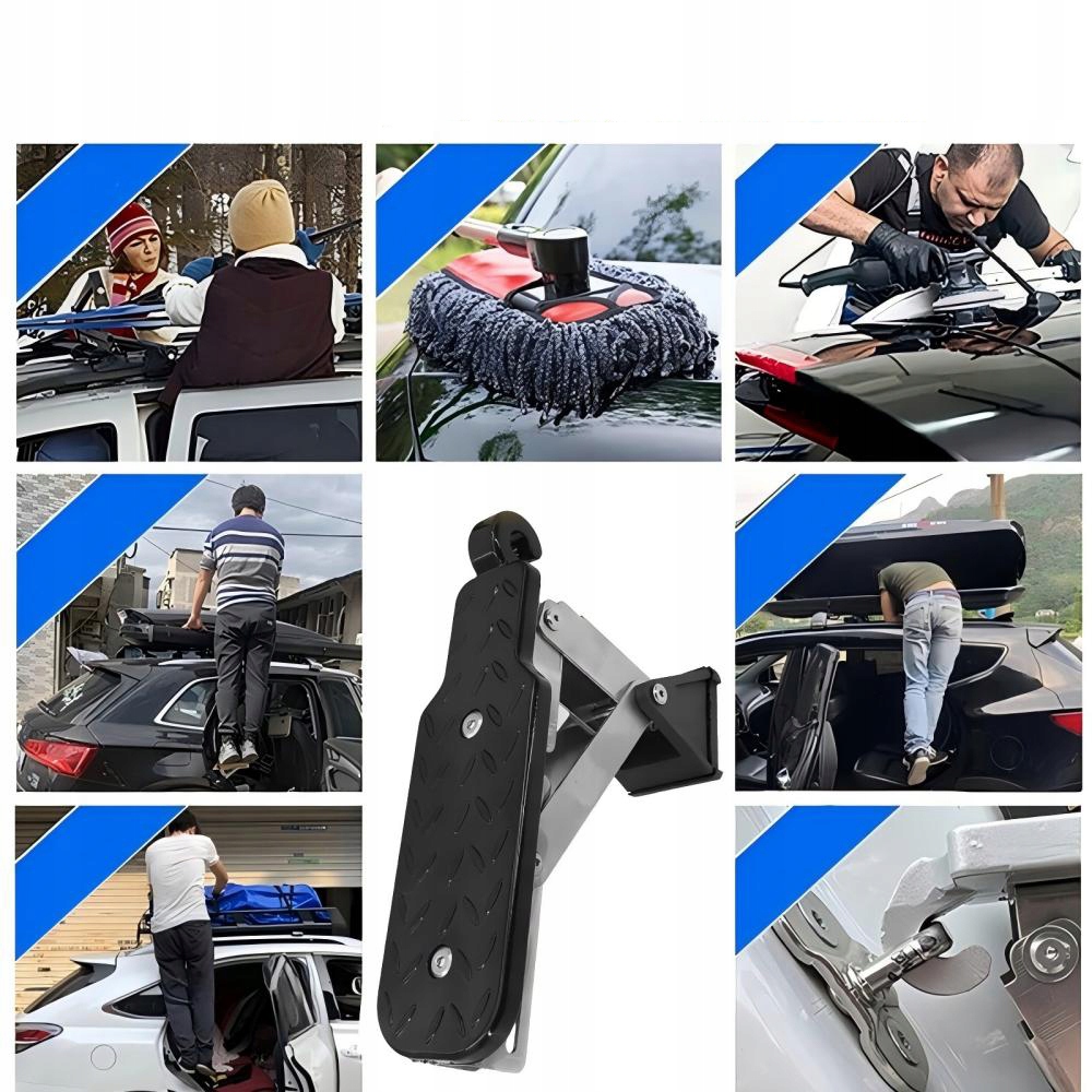 Завдяки цьому ви отримаєте зручний доступ до даху свого автомобіля універсальна складна автомобільна підніжка. Ідеальне рішення для власників позашляховиків і вантажівок, що полегшує прання та пакування багажу покрівлю або обслуговування.