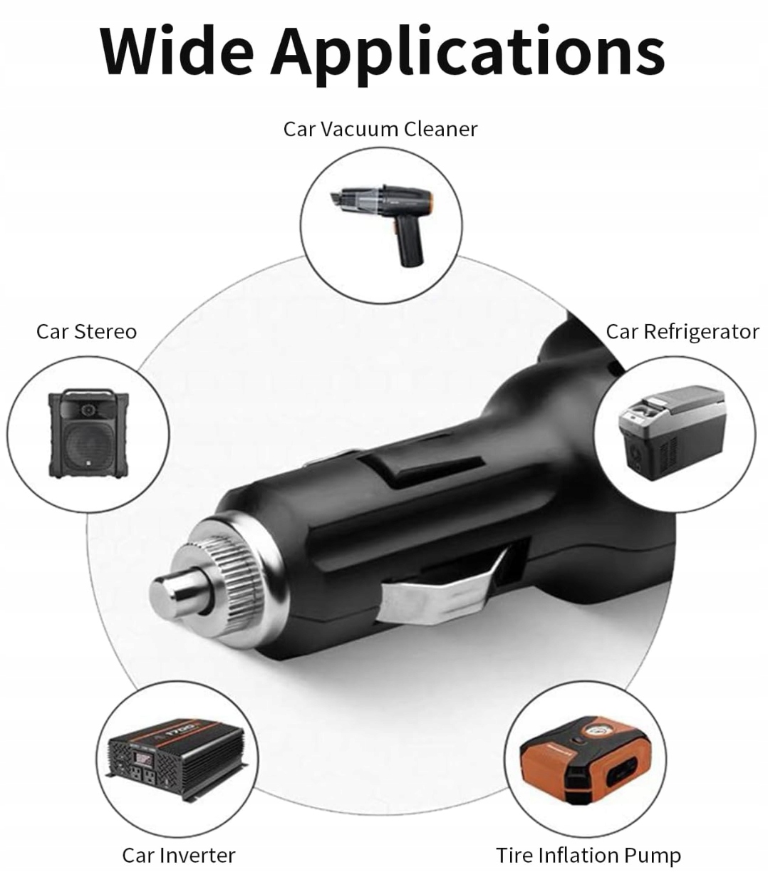 - підходить для всіх транспортних засобів з установкою 12V-24V постійного струму , включаючи пасажирські машини, вантажівки, фургони доставки, мотоцикли, позашляки, човни, косарки, трактори та інші машини. Це ідеальне рішення для всіх, хто потребує додаткового джерела живлення на дорозі.