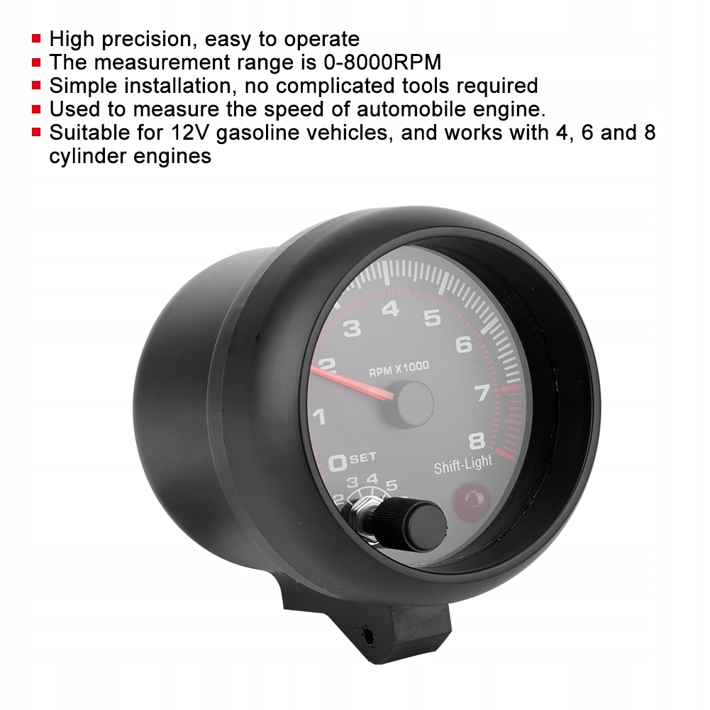 - Вхідна напруга: 12 В Діапазон вимірювань: 0-8000 об/хв