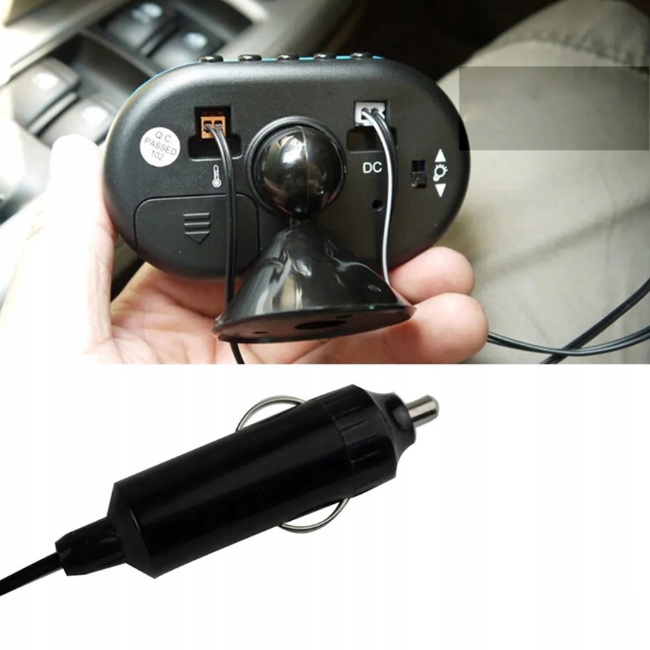 відображення дати/часу в 12/24-годинній системі. C/F перемикається дисплей. Функція Snooze Час Snooze: 5 хвилин. Діапазон температур: від -50 С до +70 С. Доступні 2 кольори світлодіодного підсвічування. Час вимірювання температури: 20 секунд. Показує напругу автомобільного акумулятора. Колір: зелений (оранжево-зелений). Діапазон температур: -50C до +70C Роздільна здатність термометра: 1 c Точність: 1,0 c Розміри: 9,2 * 7,5 * 2,8 см Довжина кабелю датчика: 1,5 метра Вага: 118 г