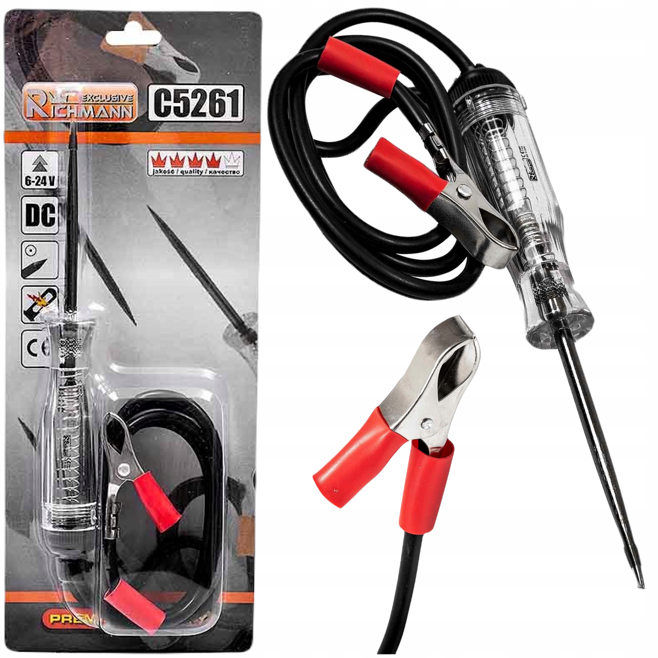 ✔️ Автомобільний тестер напруги 6-24 В з вимірювальним проводом і затискачем заземлення крокодилової кліпси.