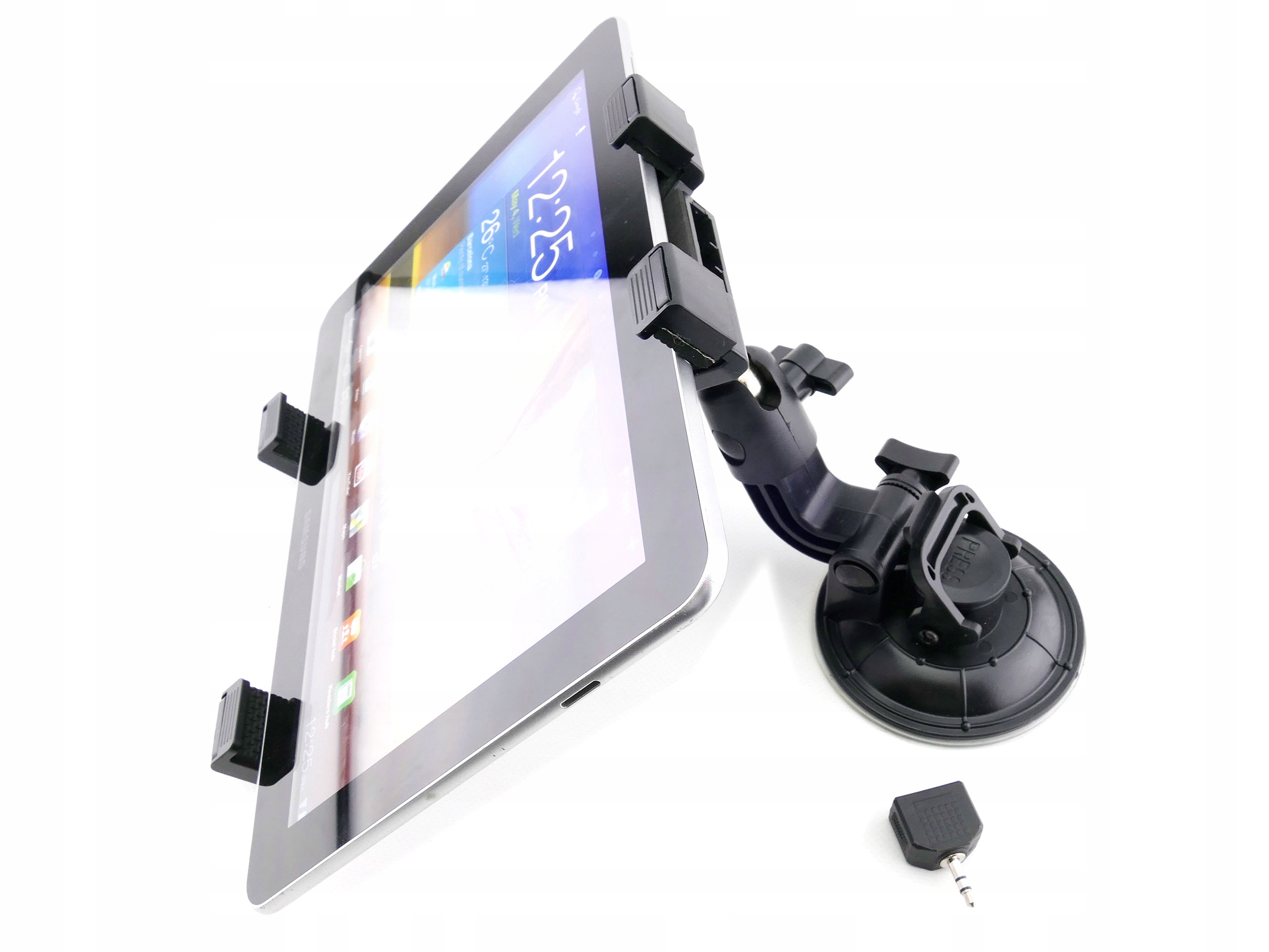 - Він універсальний - кріплення планшета в цьому тримачі має дуже широкий діапазон, тому він підходить для невеликих 7-дюймових планшетів, а також трохи більших 8-дюймових планшетів. як планшети 9,7" або 10,1" (навіть 11"); так що ви можете бути впевнені, що ваш планшет ідеально поміститься в цей тримач.