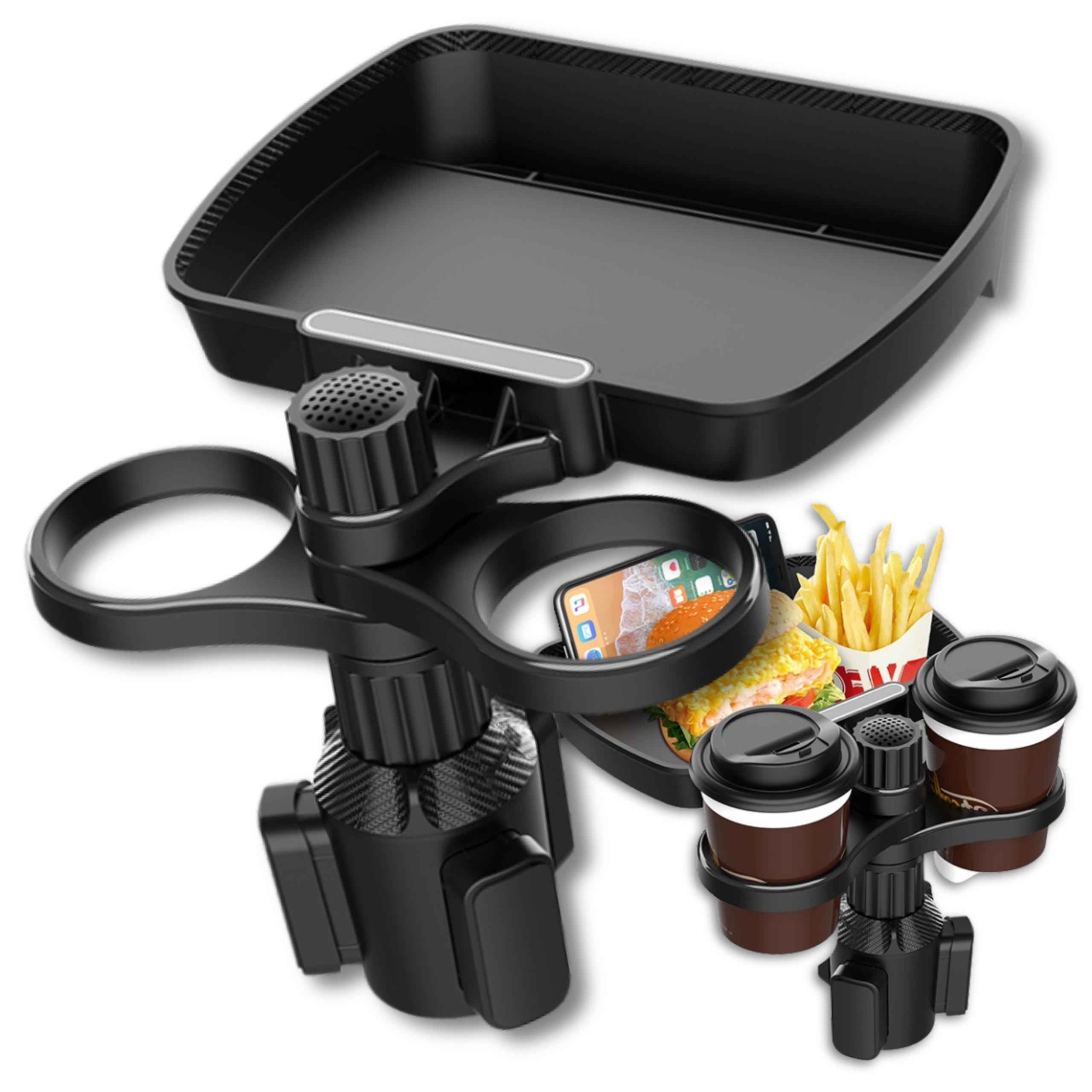 Автомобільний тримач для напоїв і їжі з поворотним підстаканником, чорний