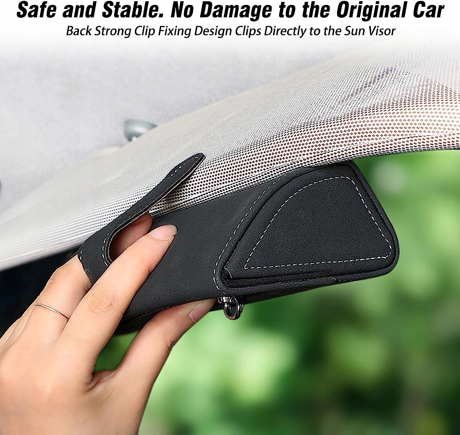 Дизайн передньої кишені Завдяки передній кишені ви можете легко взяти цінні картки та картки ETC під час їзди. Вбудований ударостійкий флокінг може запобігти подряпинам на окулярах. Попрощайтеся з безладдям - ця кліпса для сонцезахисних окулярів ефективно допомагає вам закріпити сонцезахисні окуляри на сонцезахисному козирку, попрощатися з випадково одягненими окулярами та підтримувати порядок у вашому автомобілі. Захисну конструкцію тримача для автомобільних окулярів під відкритим кутом зручно брати та вставляти, ефективно уникаючи занадто великого кута відкриття, щоб окуляри впали, і захищає безпеку окулярів. Цей тримач для сонцезахисних окулярів простий і швидкий, завдяки дизайну з застібками, можна прикріпити безпосередньо до сонцезахисного козирка. Конструкція затискача може запобігти ковзанню футляра для окулярів, а кріплення є більш стабільним. Добре впорядкуйте свої сонцезахисні окуляри - цей автомобільний тримач сонцезахисних окулярів дозволить вам упорядкувати сонцезахисні окуляри та картки. Бережіть окуляри від падіння, подряпин або втрати, щоб вони були безпечнішими.