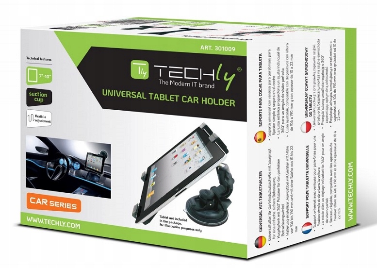 Автомобільний тримач для планшета Techly I-TABLET-VENT із присоскою оснащений функцією регулювання довжини кронштейнів, що робить його сумісним із більшістю планшетів розміром від 7" до 10,1" від різних виробників. Окрім планшета, ви також можете встановити сумісний пристрій для читання електронних книг, DVD-програвач або GPS-навігатор у тримачі. Регульована висота ніжок робить тримач ідеальним для пристроїв товщиною від 10 до 22 м.