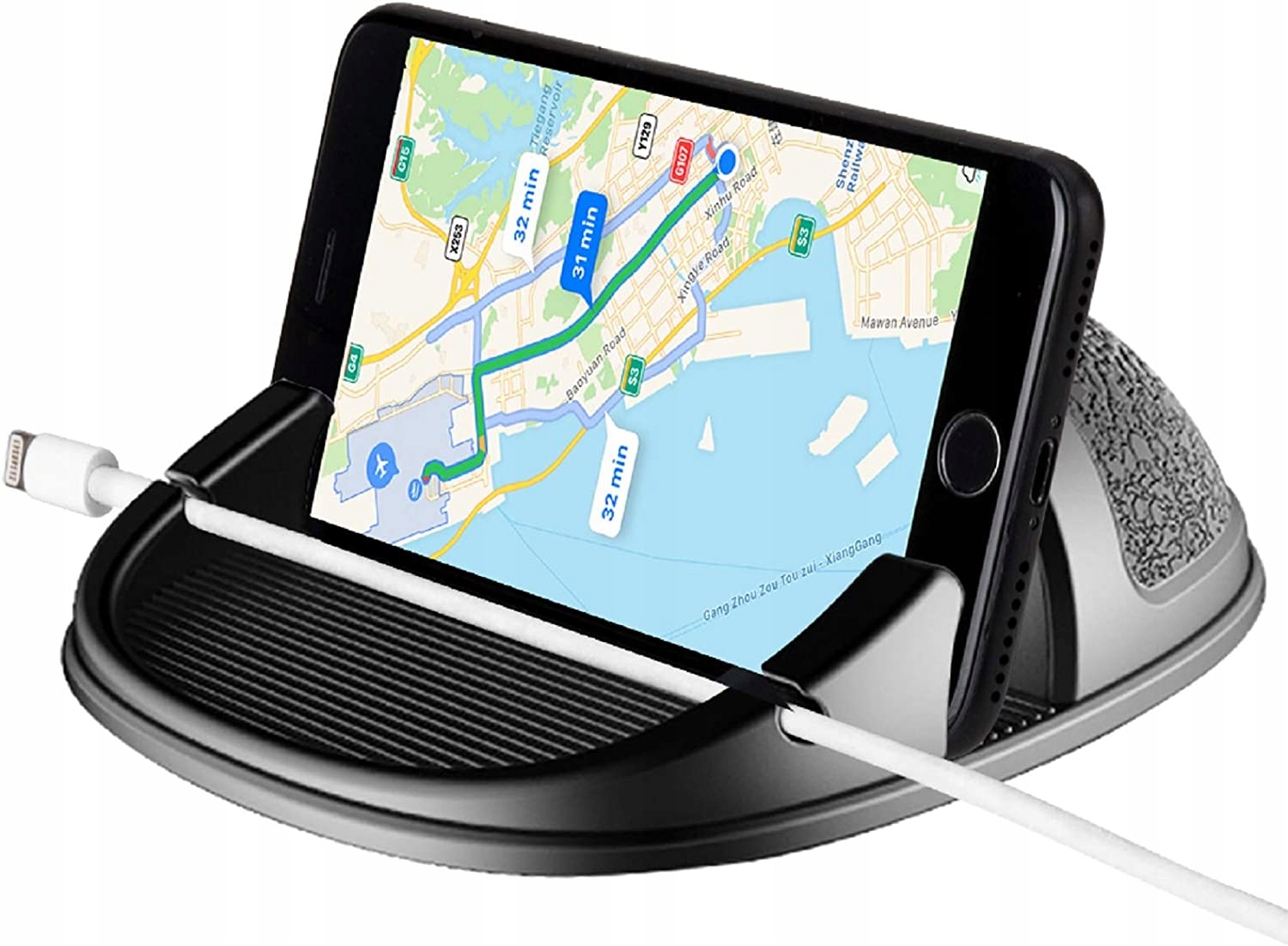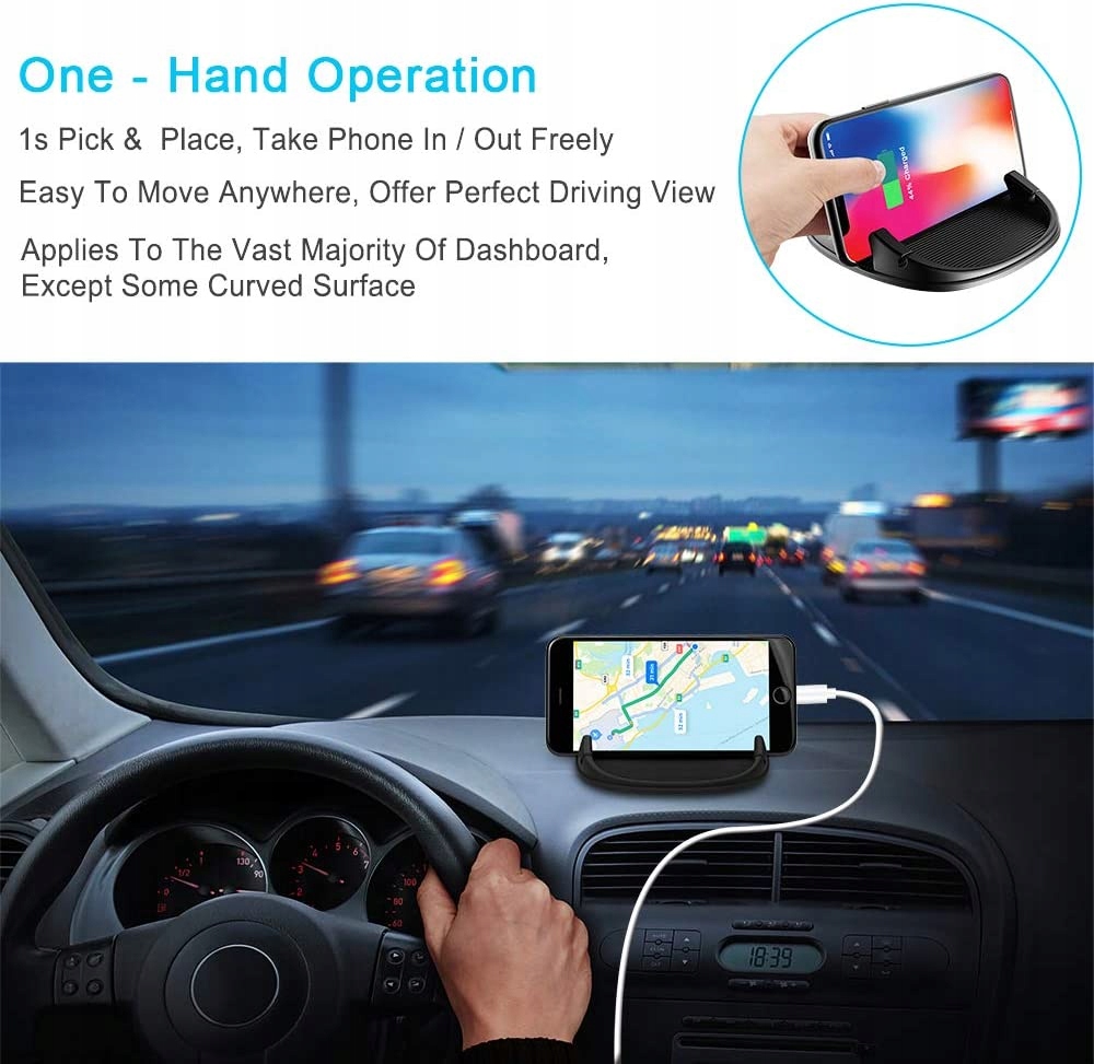 Удосконалена протиковзка технологія, виготовлена з високоякісного силікону, утримує ваш телефон на місці, щоб надійно утримувати водія та мобільний телефон. Керування однією рукою, легке керування вводом/виводом.