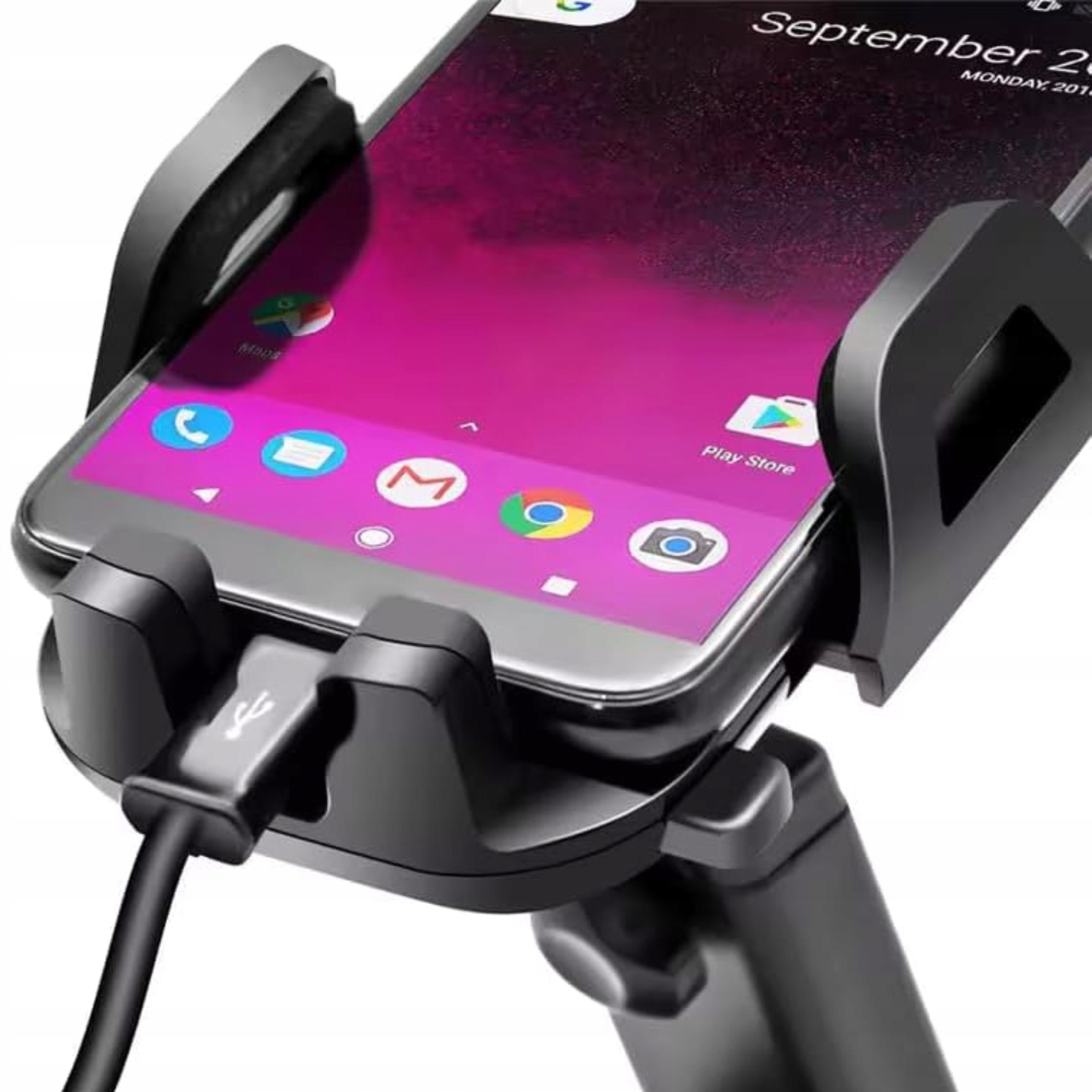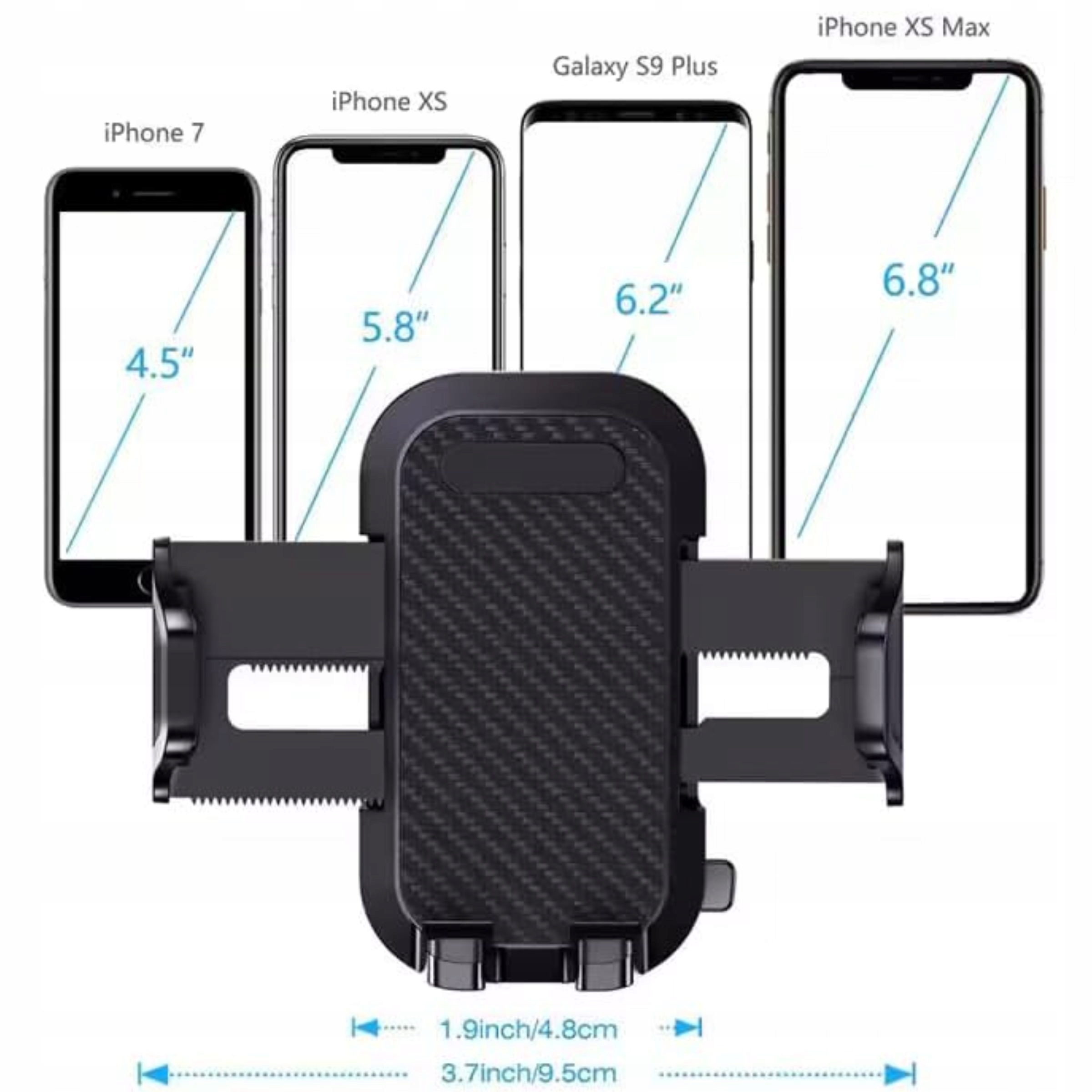 Відстань між затискачами від 5,8 до 9 см дозволяє встановлювати телефони з діагоналлю екрана від 4,7 до 8 дюймів. Ручка виготовлена з міцного ABS-пластику, що робить її високостійкою до пошкоджень і довговічною.