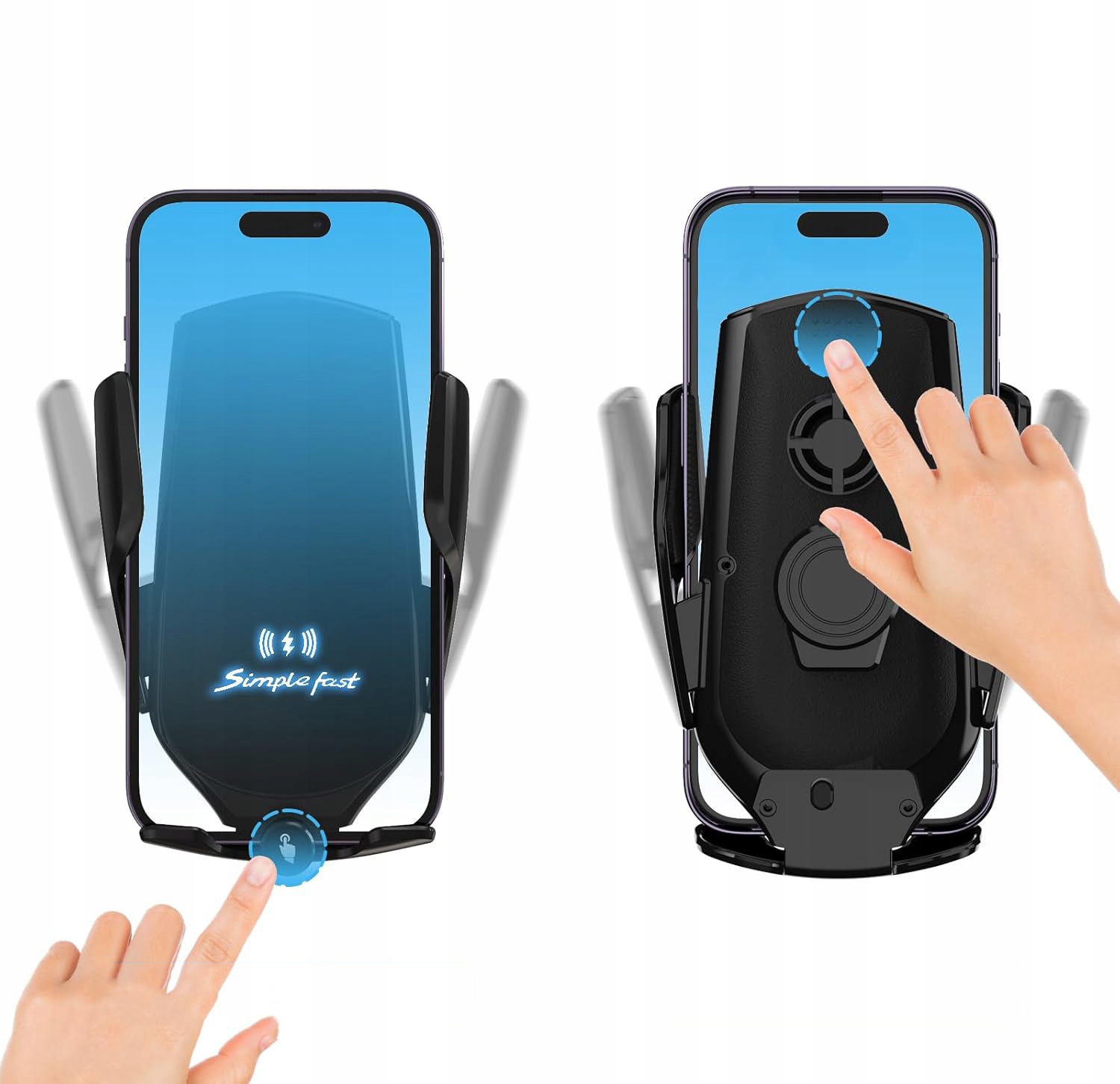 1. Автотримач із зарядним пристроєм відкривається автоматично при підключенні до джерела живлення. Помістіть телефон у тримач, і тримач автоматично зафіксується на місці та почне заряджатися.