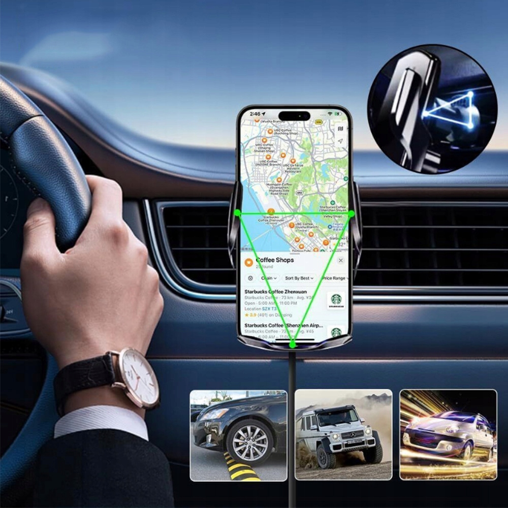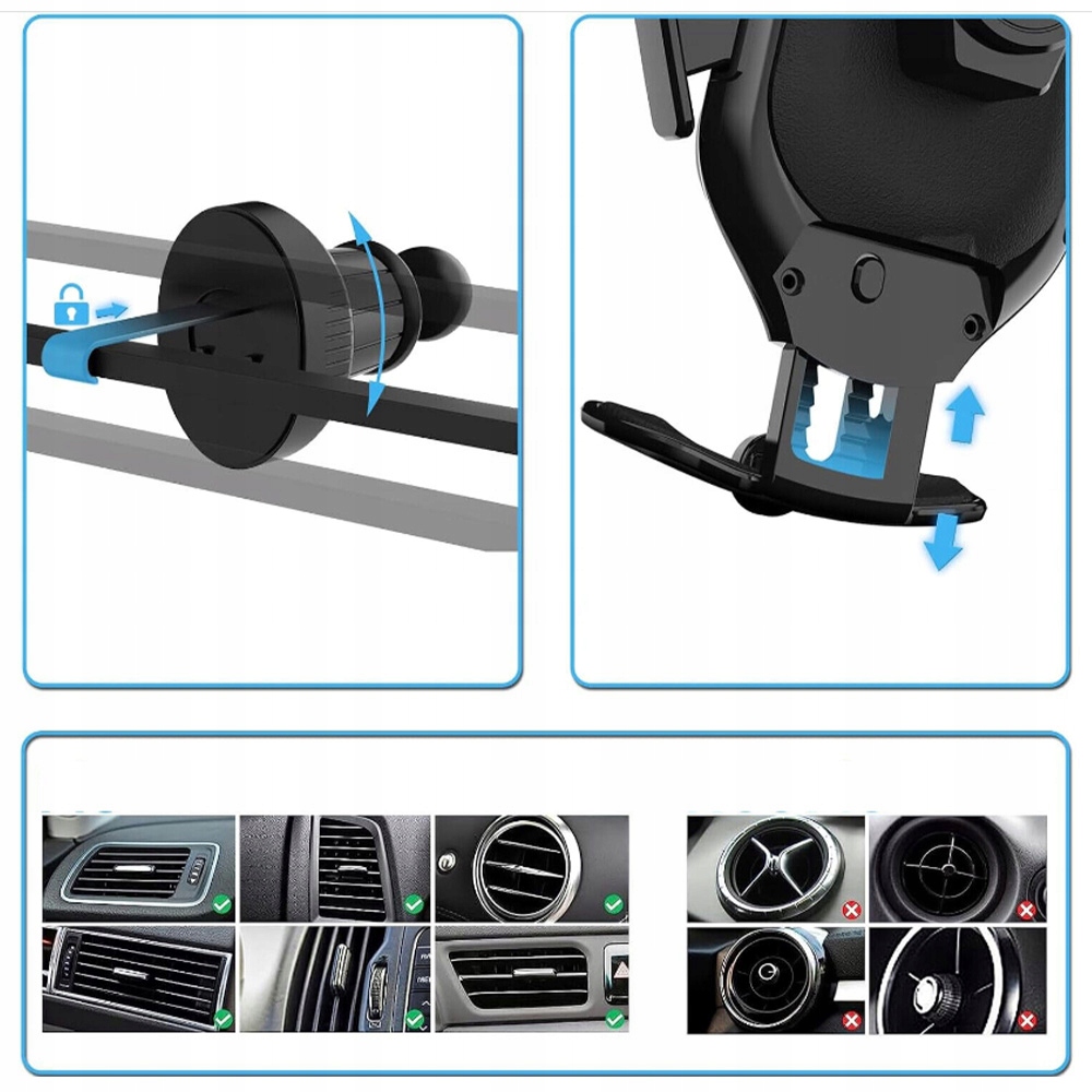 Бездротовий автомобільний зарядний пристрій UEASE Phone Holder має вбудований інтелектуальний чіп, який автоматично визначає потужність заряджання пристрою та безпечно заряджає на найвищій швидкості, підвищуючи ефективність заряджання. Швидкий зарядний пристрій сумісний із такими пристроями, як Huawei, LG V50 і Xiaomi Mi 9, до 10 Вт для Samsung та інших телефонів Android, до 7,5 Вт для iPhone і до 5 Вт для інших телефонів із підтримкою Qi.