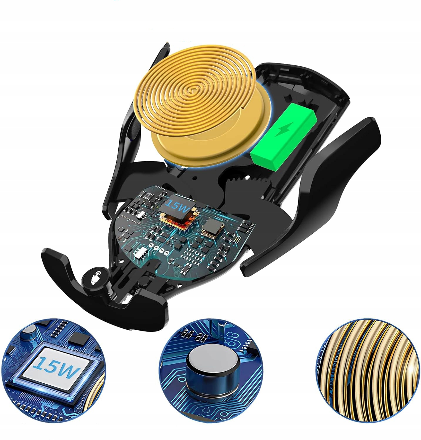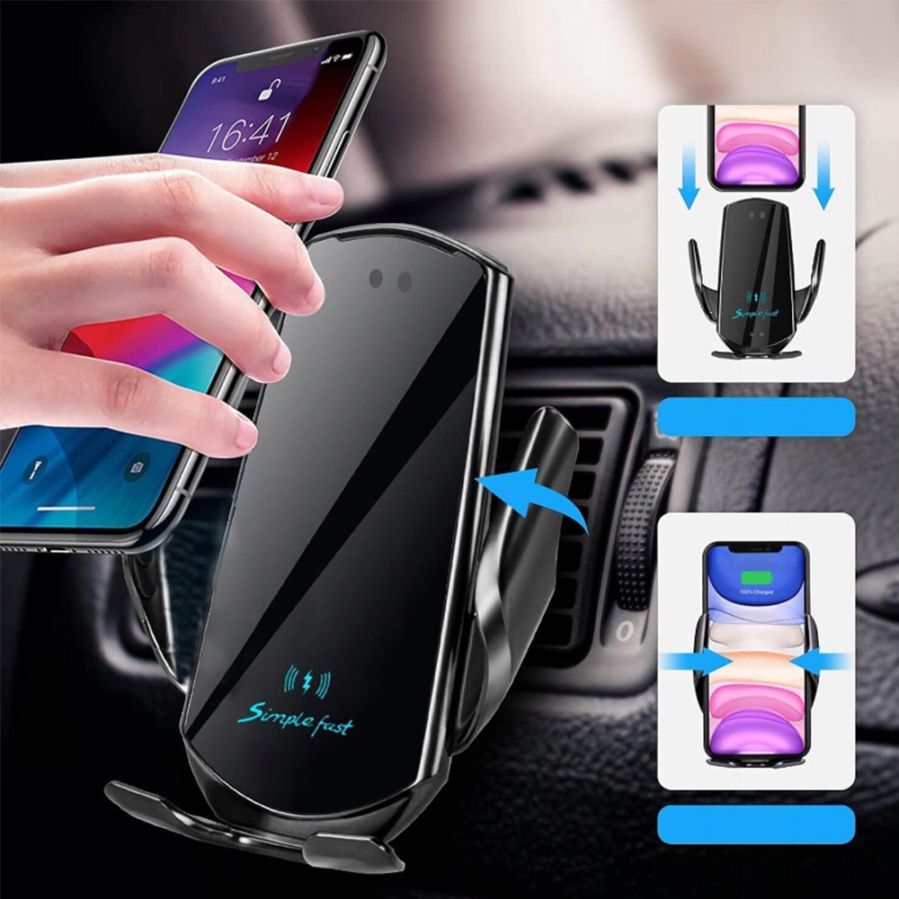Бездротовий автомобільний зарядний пристрій, автоматичний затиск із сенсором, чорний