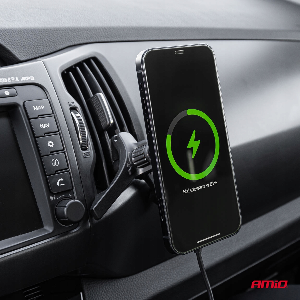 Автомобільний тримач для телефону з індуктивним зарядним пристроєм для решітки AMIO-03770