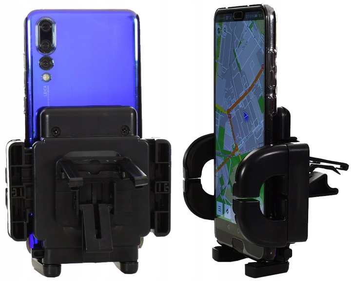 Голова має кульовий шарнір, що обертається (360 градусів), що дозволяє будь-яке горизонтальне чи вертикальне положення. Рухомі крила голови підлаштовуються під розмір телефону (від 40 мм до макс. 107 мм). Вони знерухомлюють телефон і водночас забезпечують захист від раптового випадання телефону з тримача.