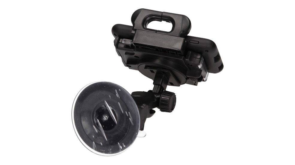 Рукоятка регулюється в трьох площинах: вгору-вниз, вліво-вправо і вільне обертання спинок кріплення на 360 градусів. Надійно зроблені елементи регулювання забезпечують повну жорсткість ручки, таким чином усуваючи будь-які вібрації, що виходять від автомобіля. Крім того, велика присоска діаметром 8 см забезпечує безпечне кріплення до скла. Ручки регулюються від 4 до 12 см. Зручний і ефективний механізм фіксації і звільнення рукоятки дозволяє комфортно встановити і швидко розібрати пристрій з тримача. Кронштейни кріплення оброблені м'якою піною, яка додатково знижує вібрацію та виключає можливість випадання пристрою з тримача. Тримач також має довгий кронштейн для кріплення, що полегшує навігацію під час водіння.