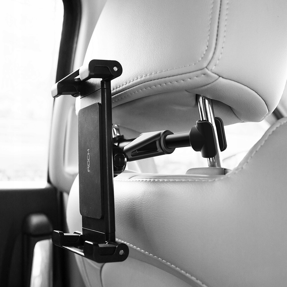 Uchwyt na zagłówek do tabletu, telefonu Rock z podkładkami silikonowymi chroniącymi urządzenie.