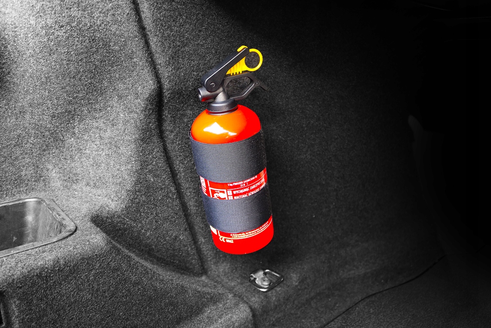 З нашим тримачем ви можете безпечно перевозити вогнегасник у багажнику свого автомобіля! Міцна липучка гарантує, що вогнегасник надійно тримається та не переміщується в багажнику!
