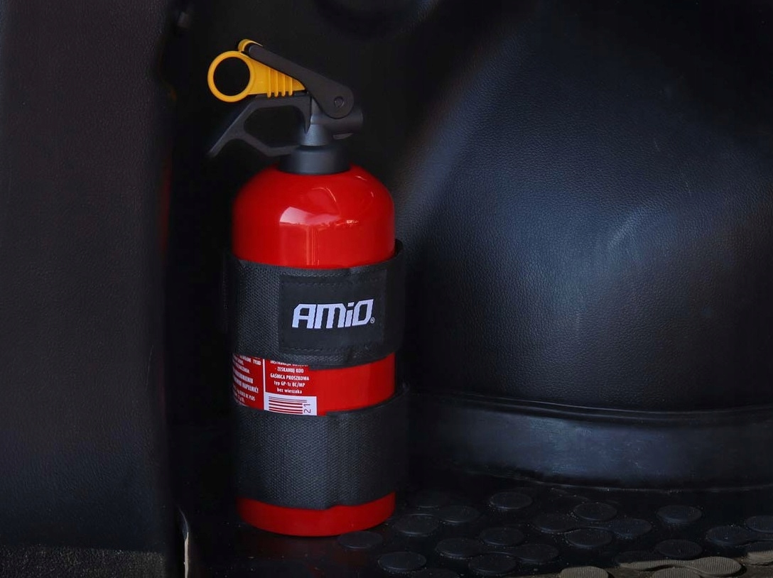 велика поверхня на липучках захищає вогнегасник від переміщення,