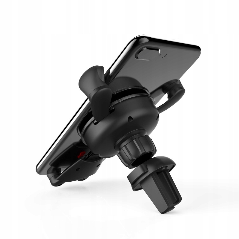 Гравітаційний автомобільний тримач з індуктивним зарядним пристроєм для кріплення на вентиляційну решітку автомобіля. Виріб надзвичайно простий у використанні, просто покладіть на нього телефон, і губки закриються автоматично. Він має трикутну структуру, що забезпечує стабільність під час руху, широкі можливості регулювання та гумові накладки, а також спеціальний виріз, який дозволяє підключити зарядний пристрій.