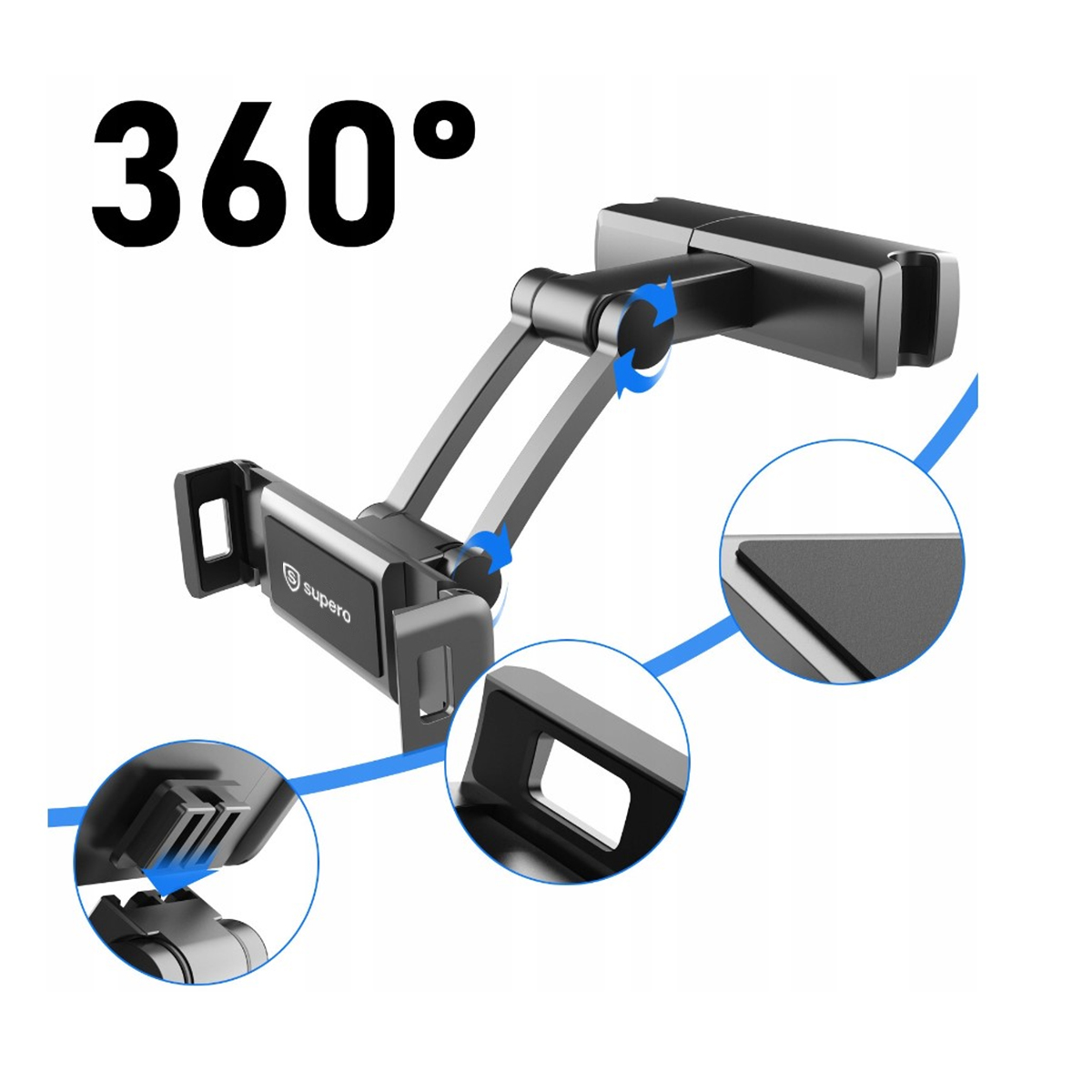 Високоякісний універсальний тримач 2 в 1. Функціонує як автомобільний тримач для планшета або телефону. Для встановлення на підголівники автомобільних сидінь. Ідеально підходить для тривалих сімейних подорожей.
