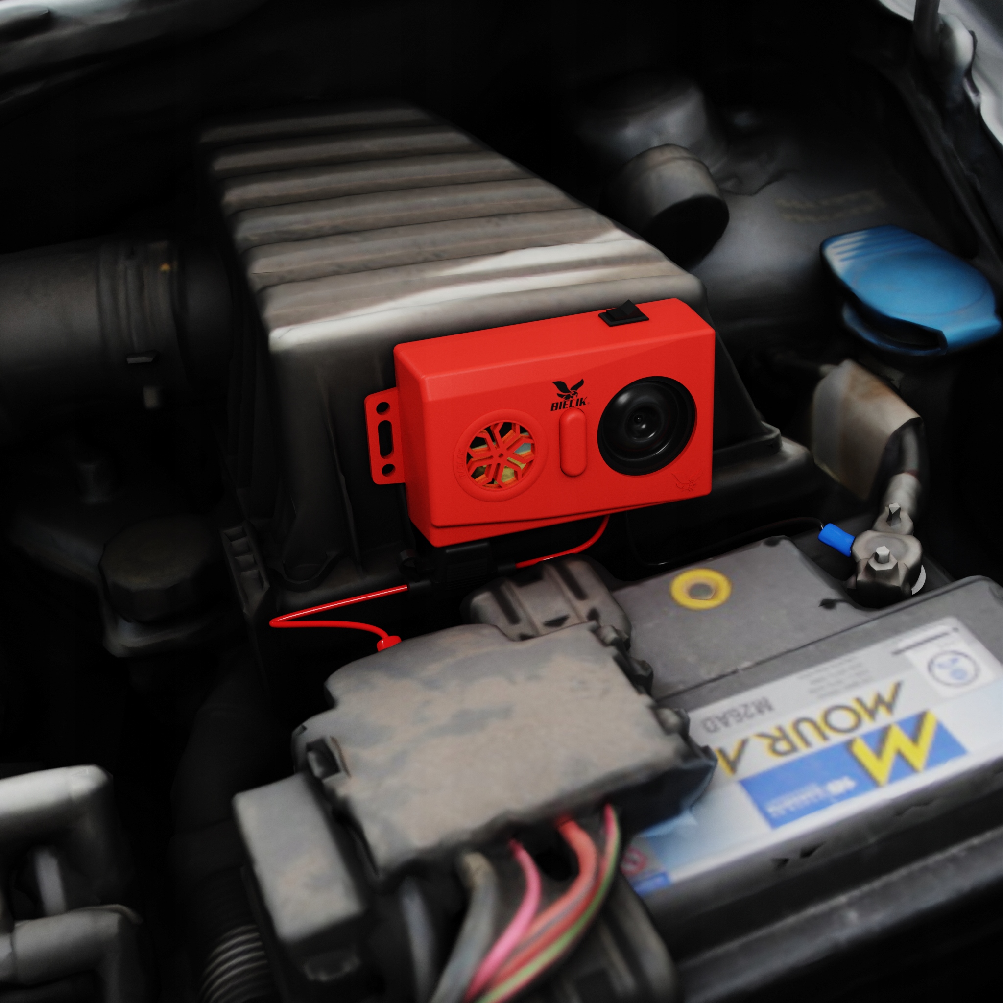 Автомобільний ультразвуковий відлякувач куниць від BIELIK® у версії PRO. Ефективно відлякує тварин, таких як куниці, ласки, щури та миші від проникнення під капот автомобіля.